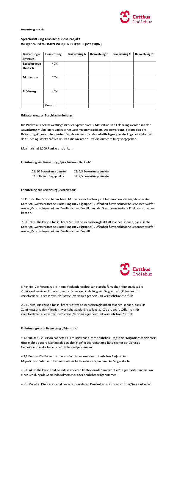 Ausschreibung: Sprachmittlung Arabisch für das Projekt WORLD WIDE WOMEN WORK IN COTTBUS (MY TURN)