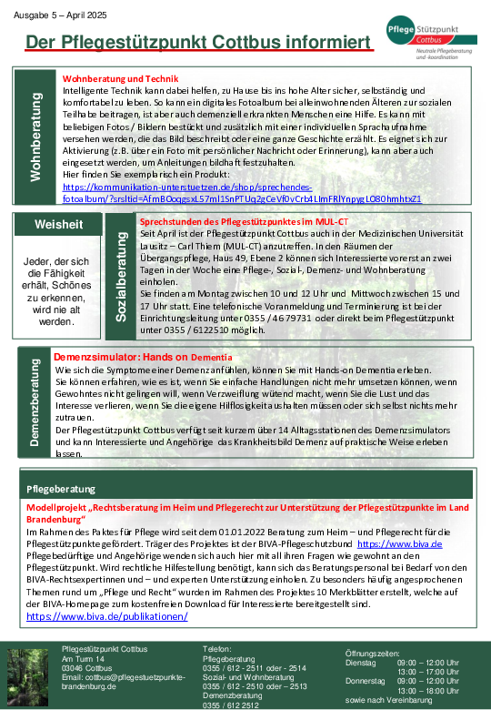 Der Pflegestützpunkt Cottbus informiert - April 2025