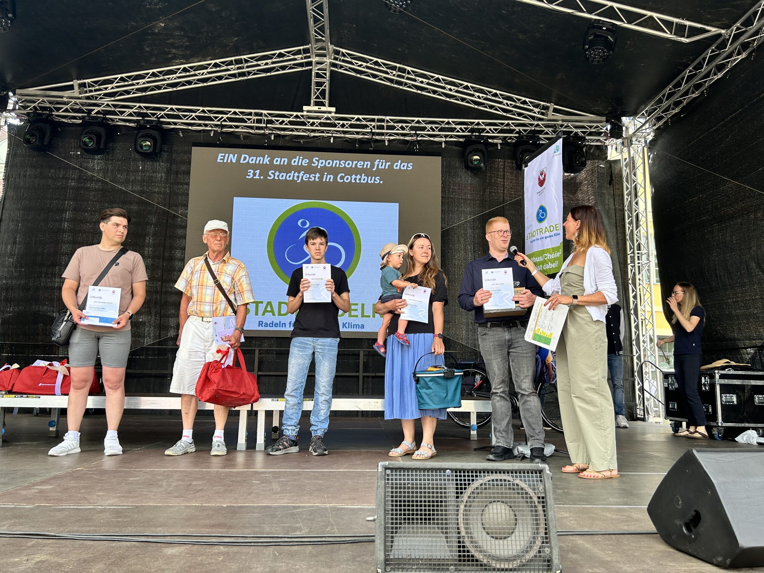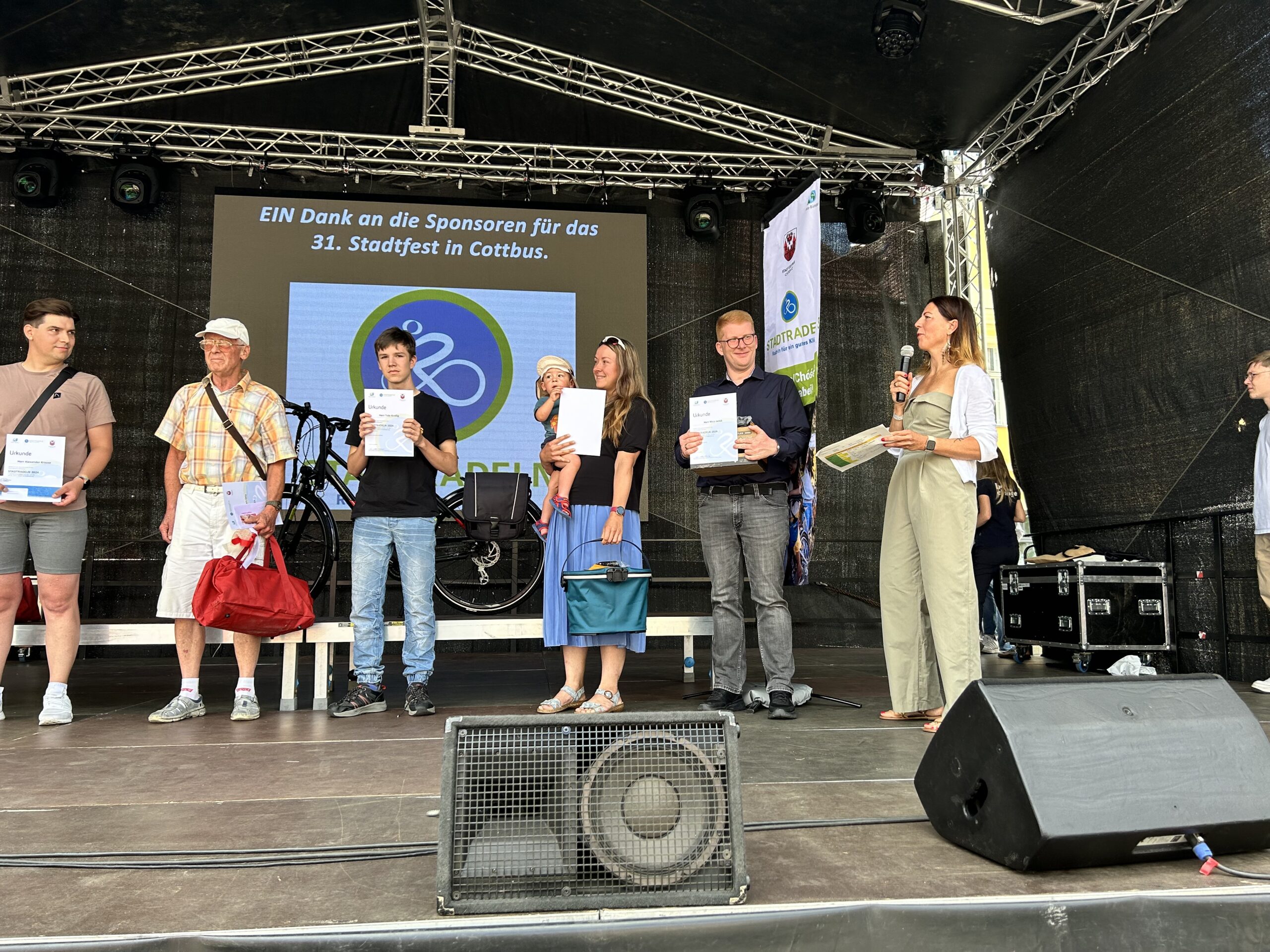 Am Sonntag, 23.06.2024, ab 11:00 Uhr werden die erfolgreichsten Teams und Radelnden sowie die glücklichen Losgewinnerinnen oder -gewinner im Rahmen einer feierlichen Preisverleihung auf dem Cottbuser Stadtfest (Bühne am Altmarkt) ausgezeichnet. Dazu sind alle Teilnehmenden bereist jetzt herzlich eingeladen. Wie in jedem Jahr stehen dank der Sparkasse Spree-Neiße, der Stadtwerke Cottbus, der LWG, der LEAG, der Knappschaft Bahn See, dem Brandenburgischen Landesmuseum für moderne Kunst, der Lagune, dem Tierpark Cottbus/ Chóśebuz, dem Piccolo Theater, der Ostseeradler Pension, dem E-Center Scholz, Hartiste Teamwear, dem ADFC und dem Stadtmarketing Cottbus wieder schöne Preise für unsere erfolgreichsten Radlerinnen und Radlern zur Verfügung.