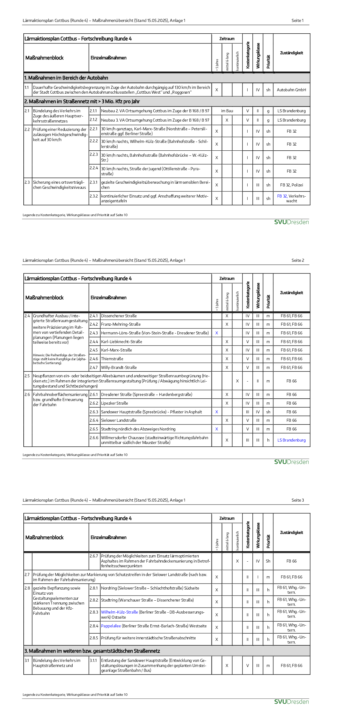 Die Anregungen, Vorschläge oder Einwendungen fließen in die weitere Erarbeitung des Lärmaktionsplanes für die Stadt Cottbus/Chóśebuz ein. Der endgültige Plan wird nach Bewertung aller fristgerecht eingegangenen Einwendungen beziehungsweise Anregungen fertiggestellt.