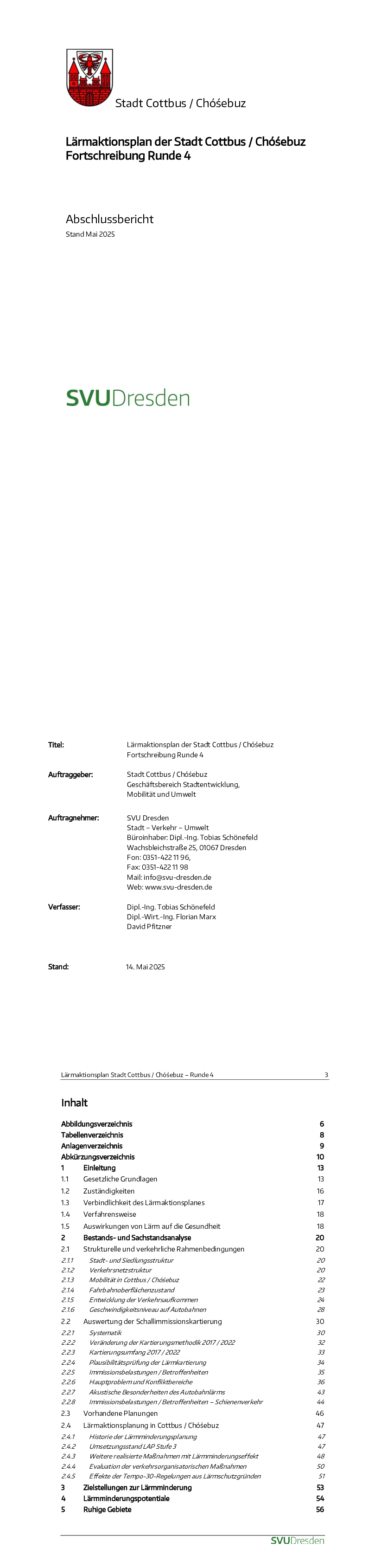 Entwurf: Lärmaktionsplan der Stadt Cottbus-Chóśebuz Fortschreibung Runde 4