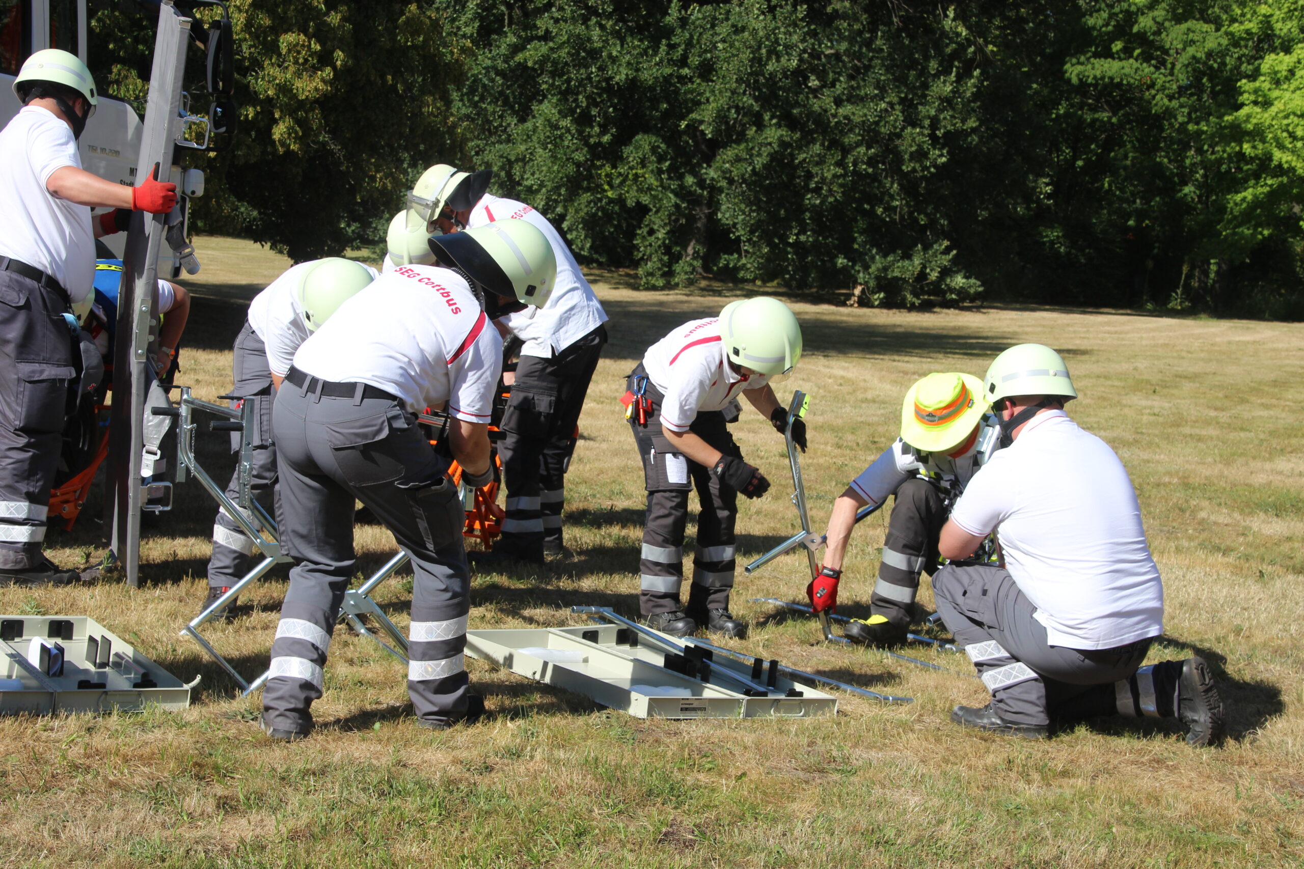 Oberbürgermeister Tobias Schick machte sich gemeinsam mit Bürgermeisterin Doreen Mohaupt und dem Leiter des Verwaltungsstabes Thomas Bergner im Park ein Bild vom Übungsgeschehen: „Ich bin tief beeindruckt, wie professionell dieses bedrückende Szenario hier abgearbeitet wird. Mein großer Respekt gilt allen Beteiligten, darunter vor allem den vielen ehrenamtlichen Rettungskräften und Feuerwehrleuten. Und ich wünsche niemandem, dass er ein solches Szenario erleben muss – weder als Opfer noch als Retter im Einsatz.“