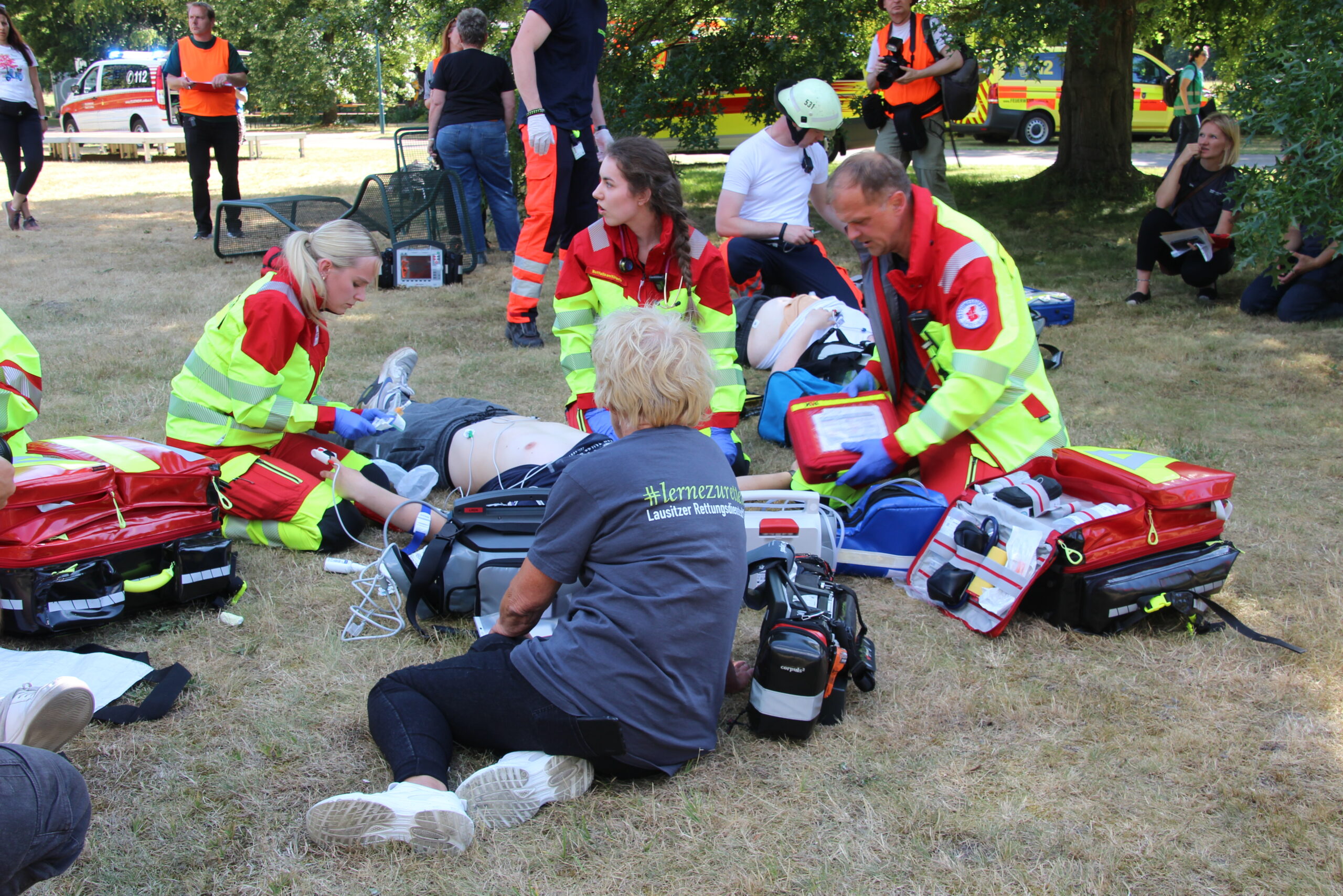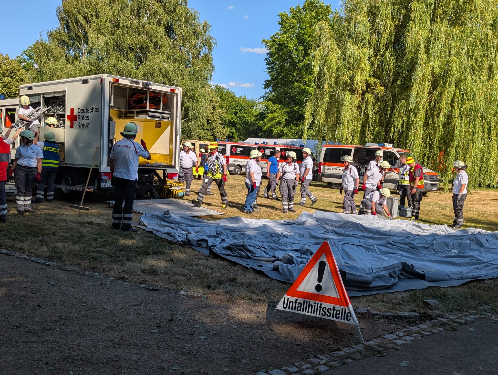 Im Cottbus Spreeauenpark ist am Freitag, 04.07.2025, ein umfangreiches Katastrophenschutz-Szenario abgearbeitet worden. Hunderte Einsatzkräfte hatten 93 „verletzte“ Personen zu sichten, zu versorgen sowie in die Medizinische Universität – Carl Thiem (MUL – CT) zu transportieren. Insgesamt waren ca. 500 Beteiligte als Mimen oder Rettungs- bzw. Unterstützungskräfte im Einsatz.