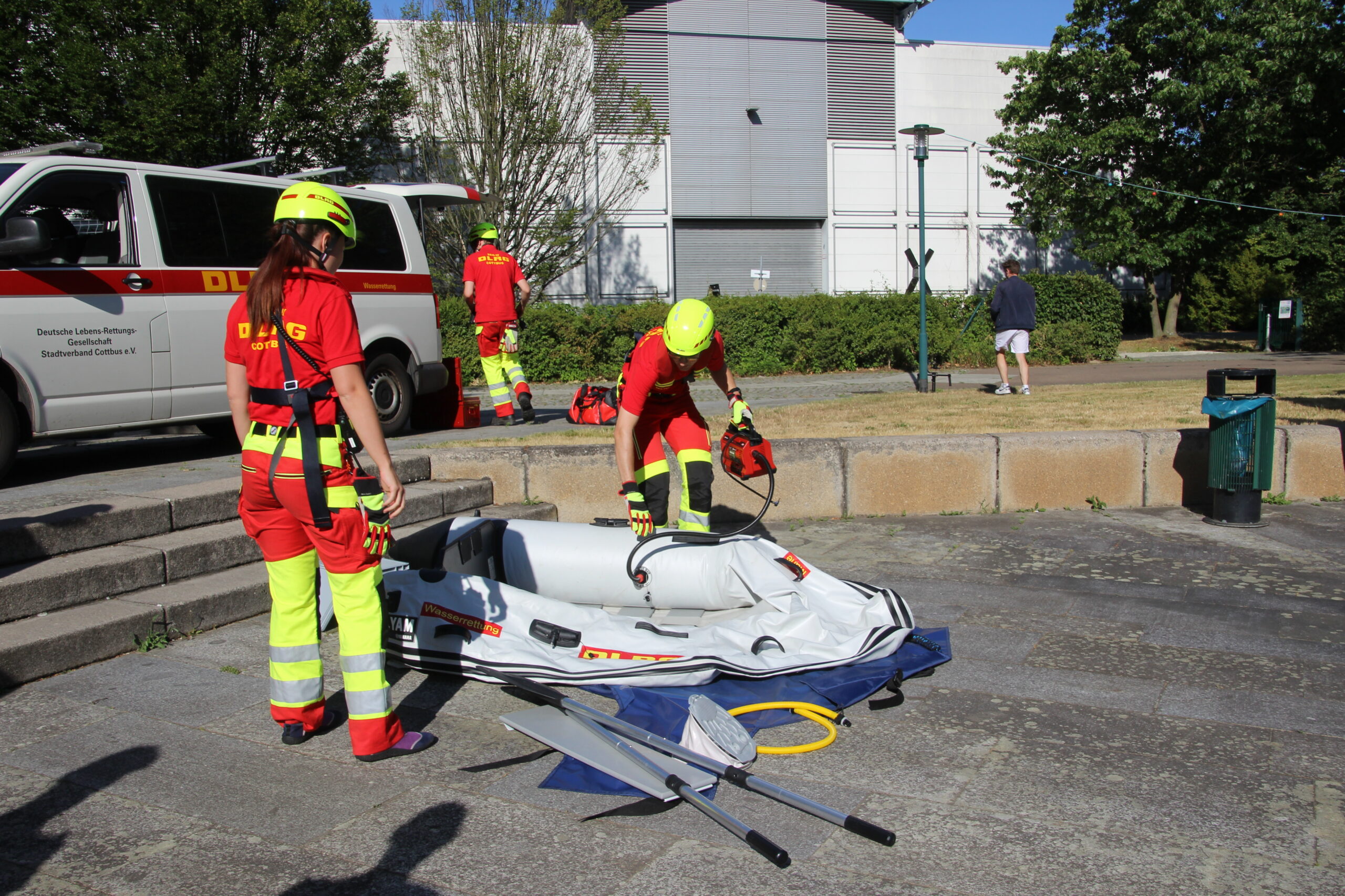 Während der Übung wurden Einheiten aus dem Süden Brandenburgs zusammengezogen, ein Hubschrauber kam zum Einsatz, Notfallseelsorger wurden geordert, Johanniter und Deutsches Rotes Kreuz waren ebenso aktiv wie verschiedene Sondereinsatzeinheiten des Katastrophenschutzes, darunter Flight und Verpflegung, und das Technische Hilfswerk. Die DLRG spürte im Parkweiher drei „vermisste“ Personen auf.