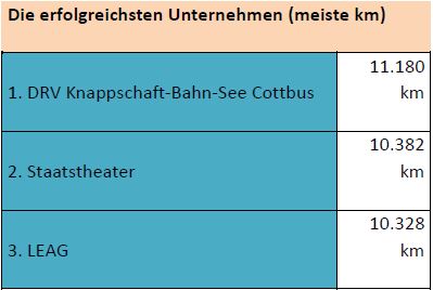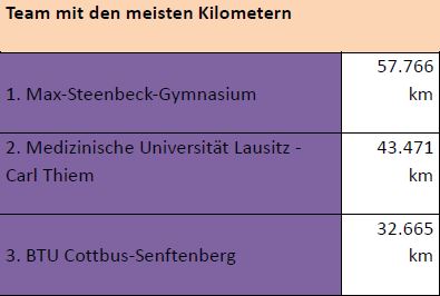 Dank der Sparkasse Spree-Neiße, den Stadtwerken Cottbus, von LWG, GWC, LEAG, Knappschaft Bahn See, dem Brandenburgischen Landesmuseum für moderne Kunst, der Lagune, dem Tierpark, der Parkeisenbahn, dem Piccolo Theater, dem Jump Up Trampolinpark, der Boulderhalle Klunker, der Feuerwehr Cottbus, dem FC Energie Cottbus, der COEX, dem Stadtmuseum, dem Staatstheater, von CMT, ADFC, Radsportclub Cottbus (RSC) sowie dem Stadtmarketingverband standen eine Vielzahl attraktiver Preise für die Radlerinnen und Radler zur Verfügung.