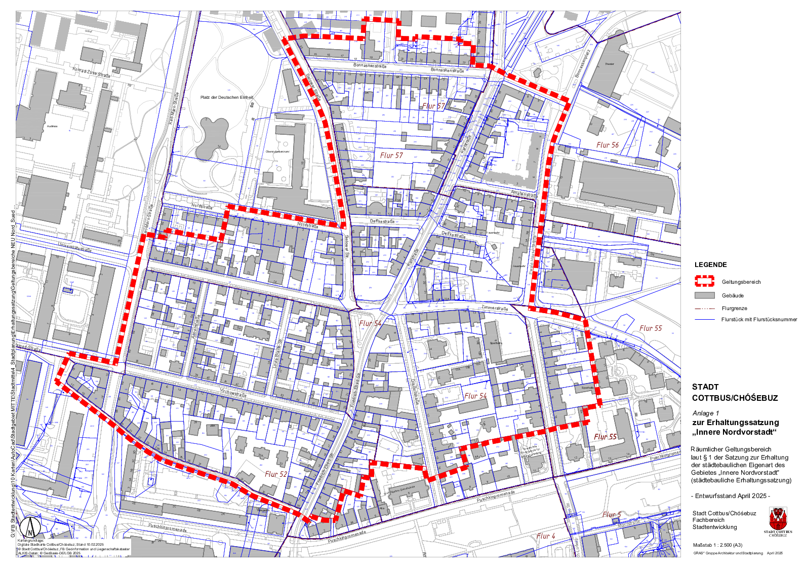 Zudem lädt die Stadt Cottbus/Chóśebuz, Fachbereich Stadtentwicklung, gemeinsam mit dem beauftragten Planungsbüro GRAS* (Dresden) interessierte Bürgerinnen und Bürger am 04.06.2025 um 16:00 Uhr im Rahmen eines Werkstattgesprächs in die Räumlichkeiten des Citymanagements (Spremberger Straße 29, 03046 Cottbus) ein, um sich zur Erhaltungssatzung zu informieren und vor Ort zu beteiligen.