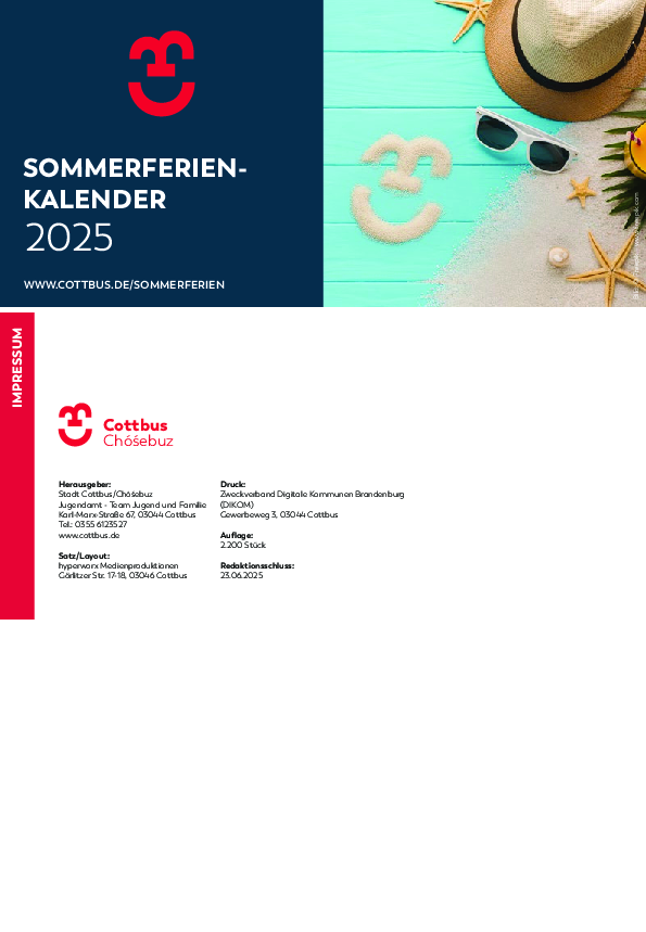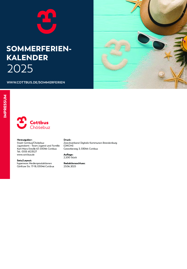 endlich ist es wieder so weit, die Sommerferien stehen vor der Tür. Viele von euch werden im Sommer mit der Familie verreisen dürfen, aber einen großen Teil der Ferienzeit verbringt ihr auch daheim in Cottbus.