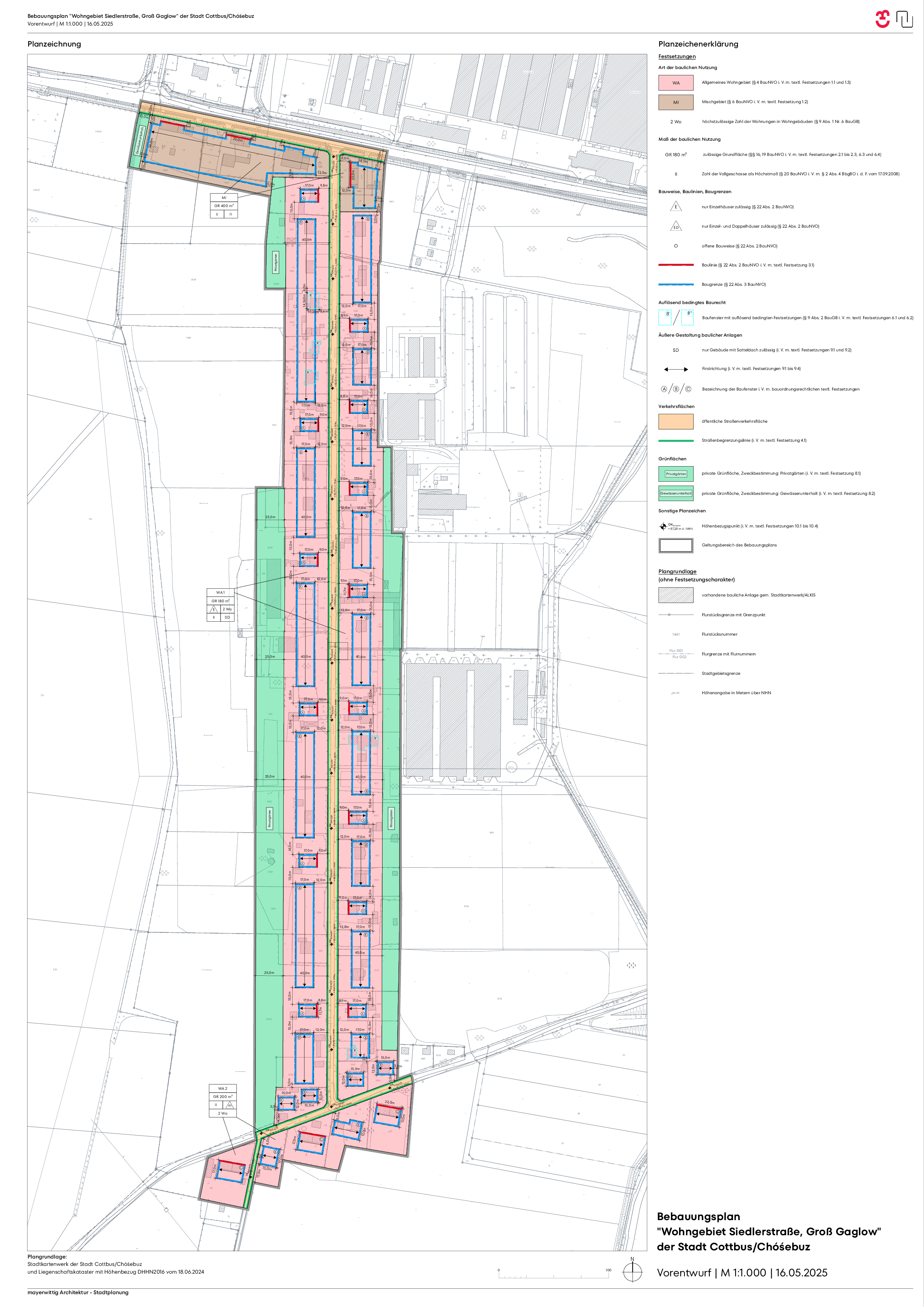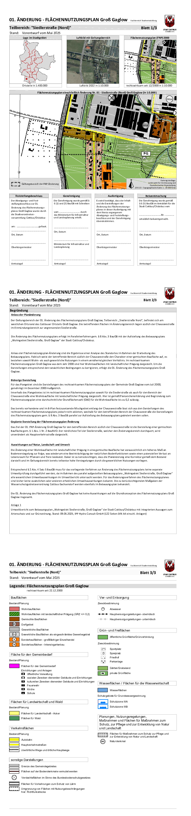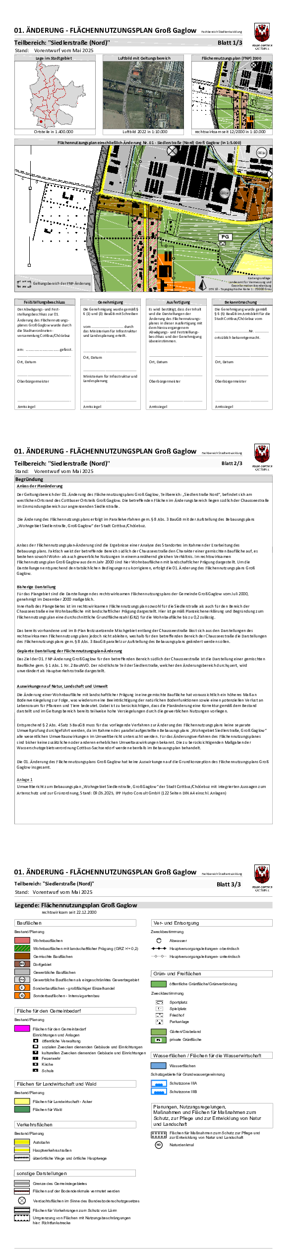 Die Stadtverordnetenversammlung der Stadt Cottbus/Chóśebuz hat am 29.03.2023 in öffentlicher Sitzung gemäß § 1 Abs. 3 Baugesetzbuch (BauGB) die Aufstellung des Bebauungsplanes „Wohngebiet Siedlerstraße, Groß Gaglow“ beschlossen.