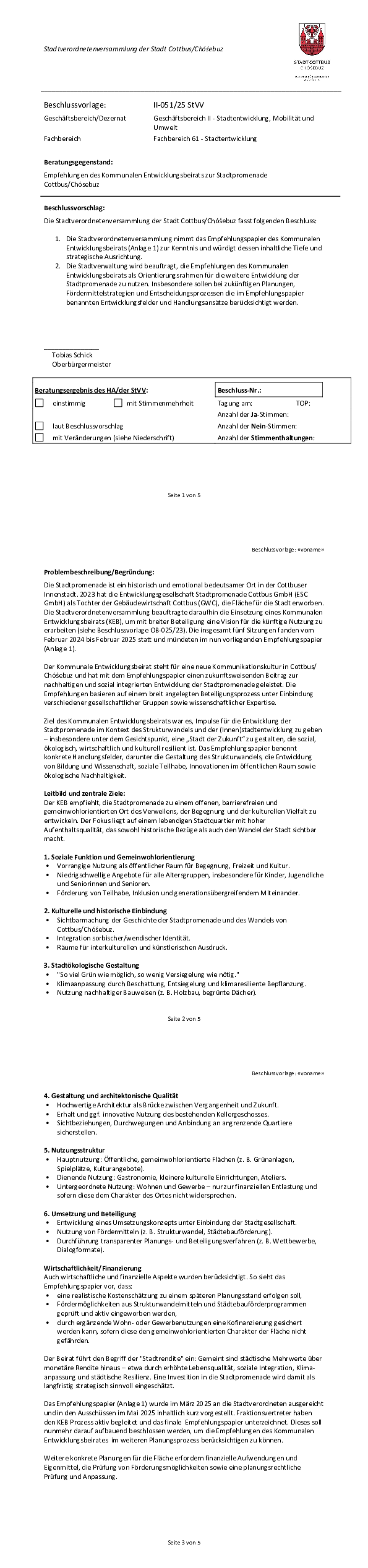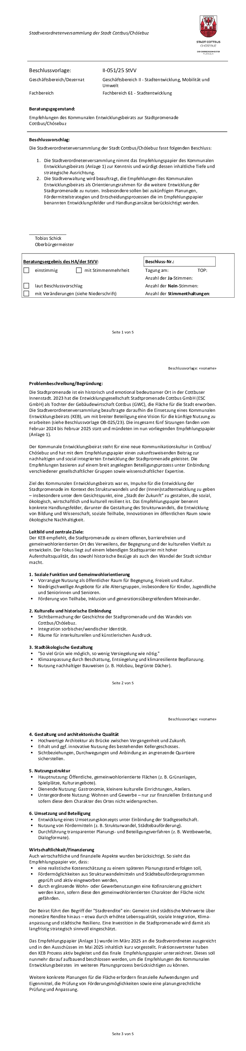 Beschlussvorlage II-051-25 StVV Empfehlungen des Kommunalen Entwicklungsbeirats zur Stadtpromenade Cottbus-Chósebuz