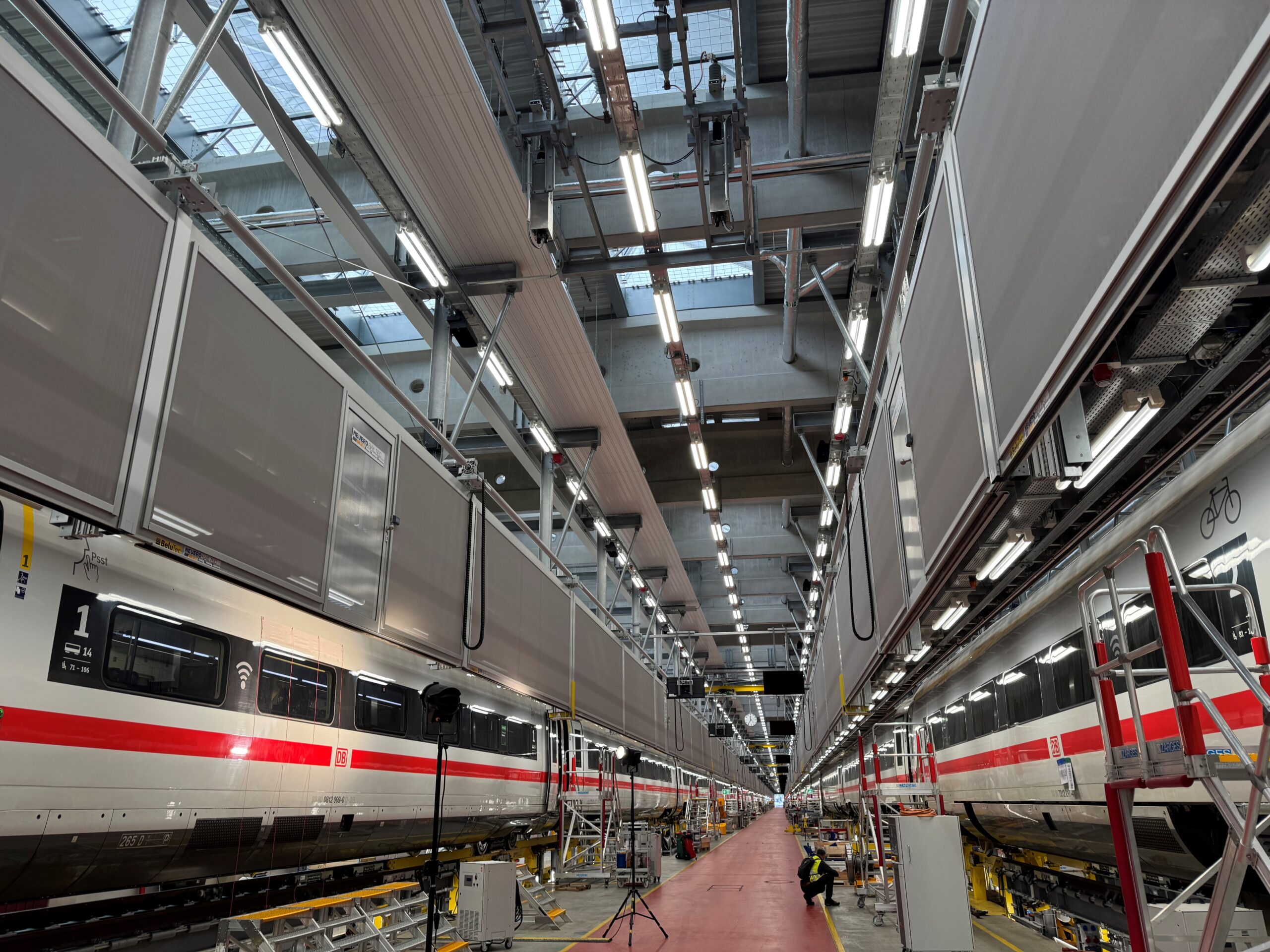 Der ICE 4 „Cottbus/Chóśebuz“ hatte für die turnusgemäße schwere Instandhaltung, die sogenannte IS700, für rund drei Wochen in der Werkshalle gestanden. In dieser Zeit haben die Techniker:innen die Drehgestelle an allen zwölf Wagen ausgetauscht, die Klimaanlagen gewartet, Türen und Schiebetritte überprüft und nachjustiert und weitere Arbeiten erledigt.