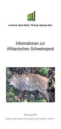 Aufgrund des amtlich festgestellten Ausbruches der Afrikanischen Schweinepest bei in einem Hausschweinebestand in der Stadt Cottbus/Chóśebuz erlässt der Landkreis Spree- Neiße/Wokrejs Sprjewja-Nysa, nachfolgende Tierseuchenallgemeinverfügung zur Bekämpfung der Afrikanischen Schweinepest vom 02. März 2023.