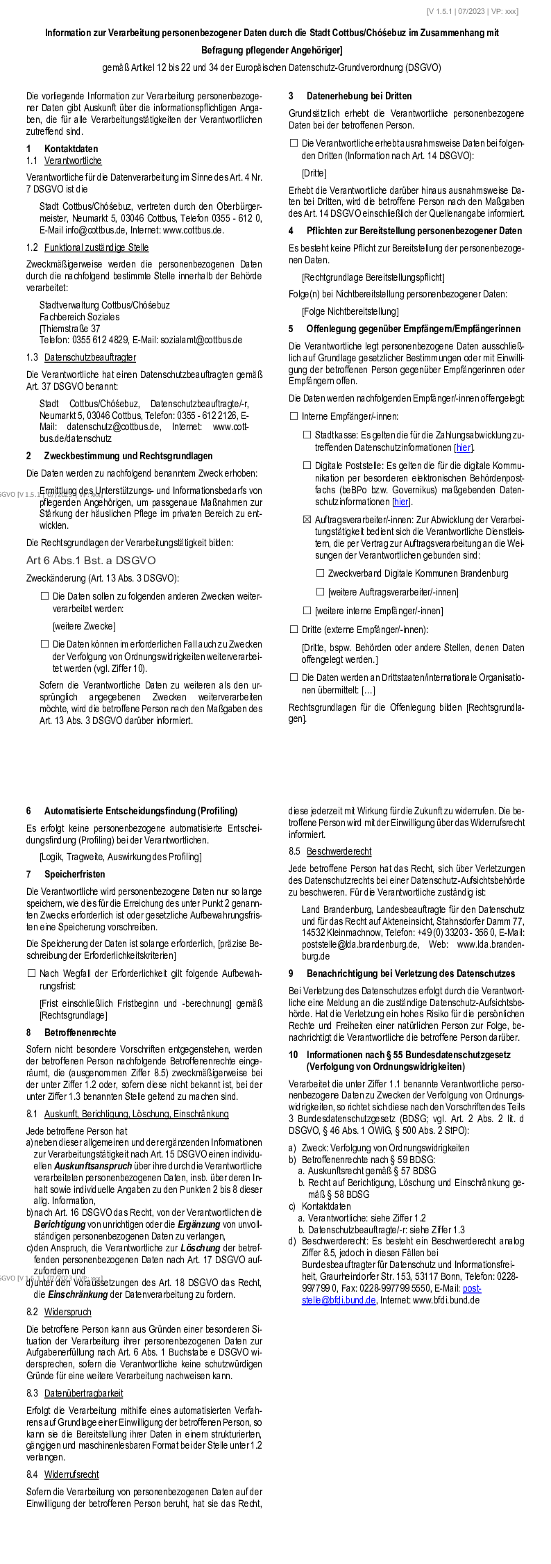 Information zur Verarbeitung personenbezogener Daten durch die Stadt Cottbus/Chóśebuz im Zusammenhang mit
