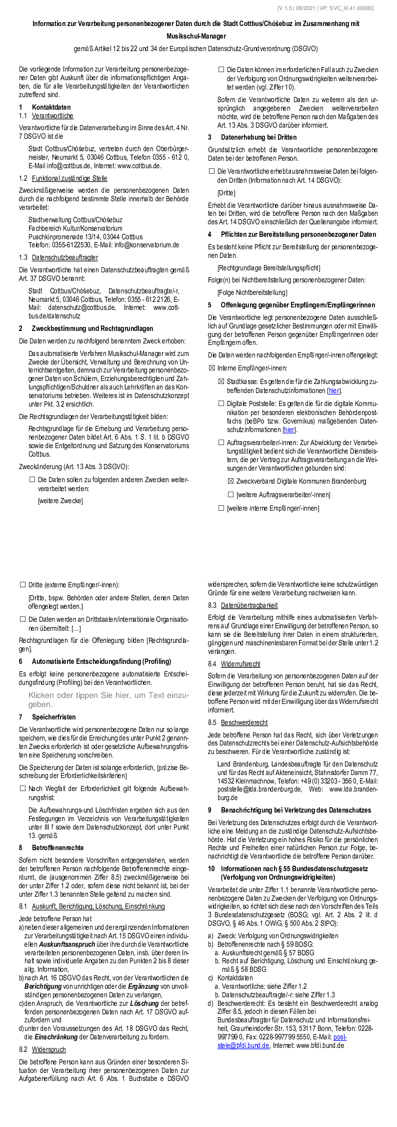 Information zur Verarbeitung personenbezogener Daten durch die Stadt Cottbus/Chóśebuz im Zusammenhang mit Musikschul-Manager