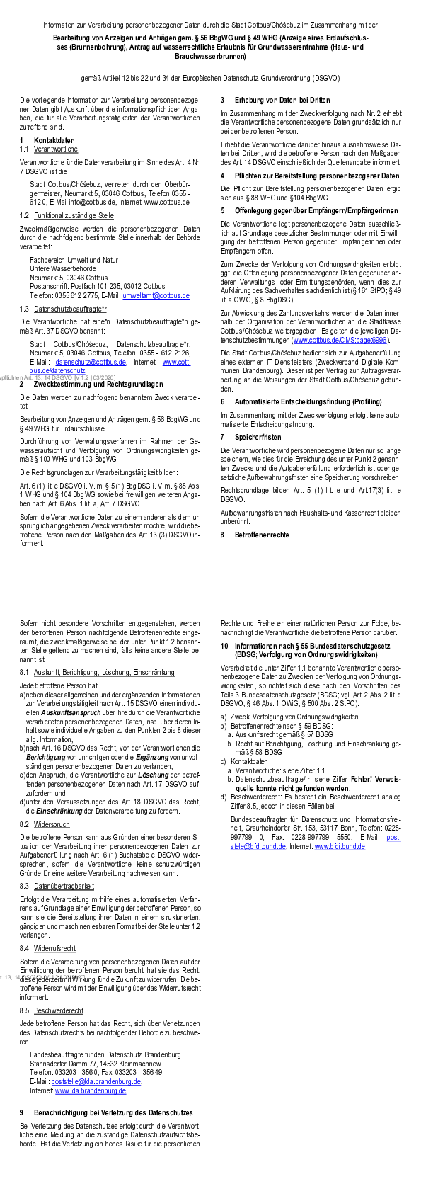 Information zur Verarbeitung personenbezogener Daten durch die Stadt Cottbus/Chóśebuz im Zusammenhang mit der