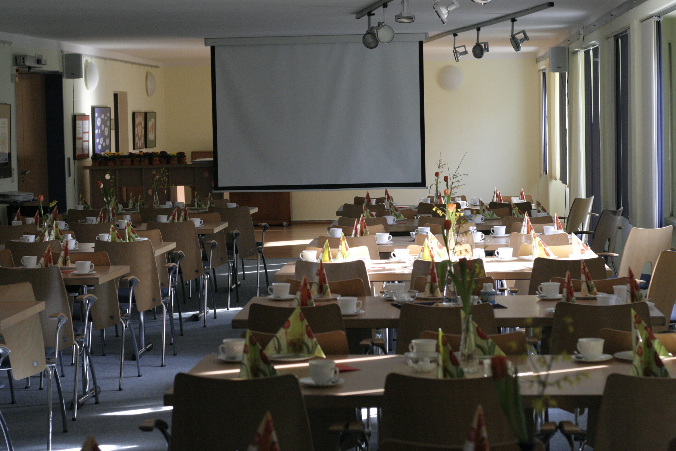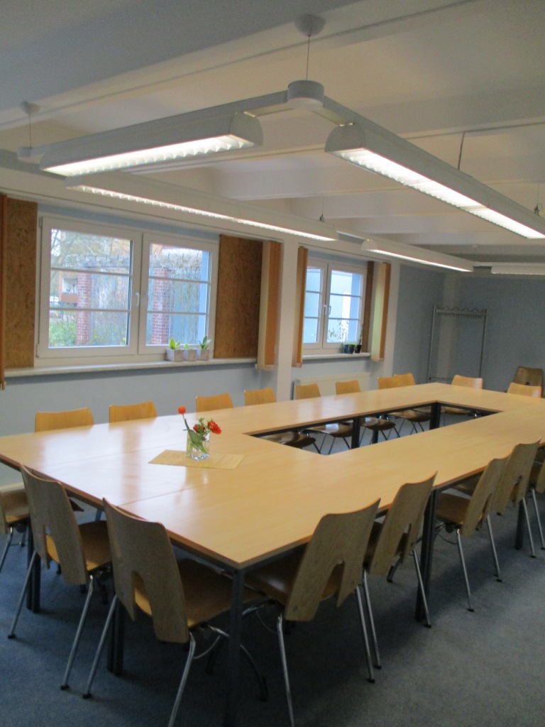 - Tafeln, Flipchart und Moderationswände für Fortbildungsveranstaltungen sind vorhanden.