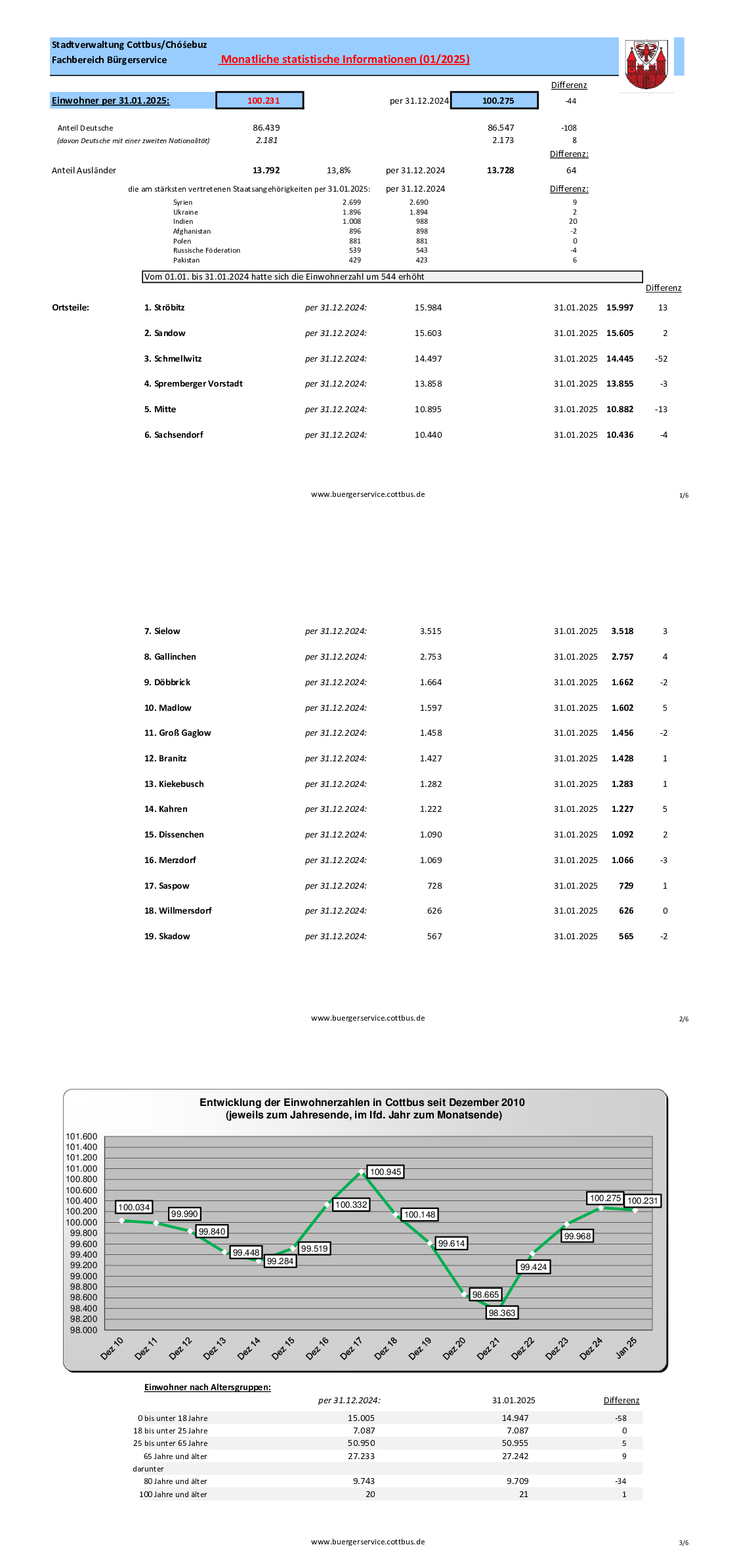 - Bevölkerungsentwicklung der Stadt Cottbus (erscheint jährlich)