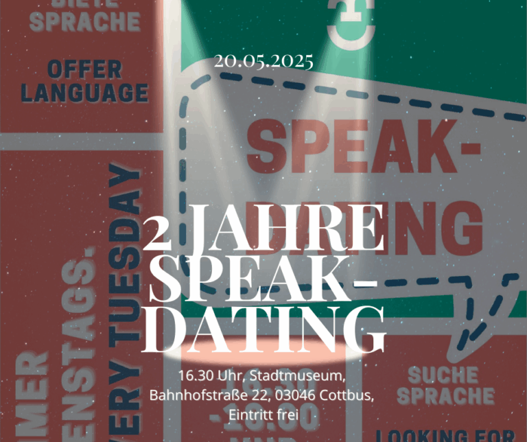 Anlässlich des 2. Geburtstages des beliebten Cottbuser Speak-Datings wird es am 20.05.2025 eine besondere Auflage geben. Mittels einer Sprachenrallye kann