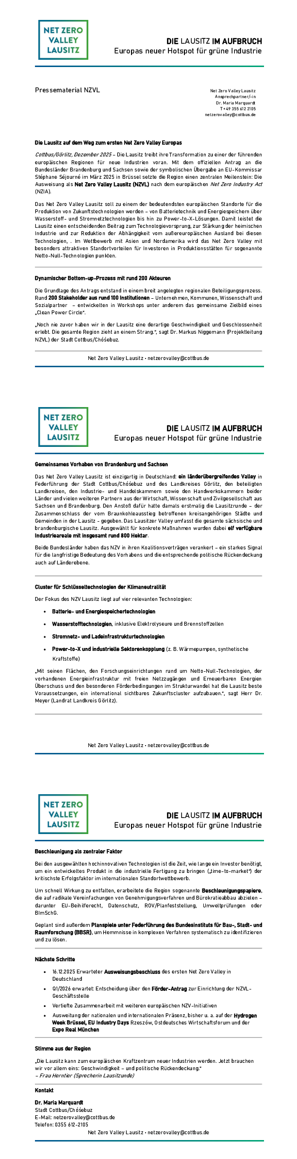 Die Ausweisung des Net Zero Valleys ist für die Lausitz zweierlei: ein wichtiges Signal bei der Unterstützung des Strukturwandels und ein neuartiger Ansatz zur Ansiedlung von Unternehmen und Innovationen. Mit dem Net Zero Valley kommen beschleunigte Genehmigungsverfahren, gezielte Fördermaßnahmen von Bund und Ländern zur Entwicklung des Valleys und Maßnahmen zur Aus- und Weiterbildung. Das alles ist wichtig für die Lausitz – einer Region, die jetzt beim Strukturwandel ernst macht.