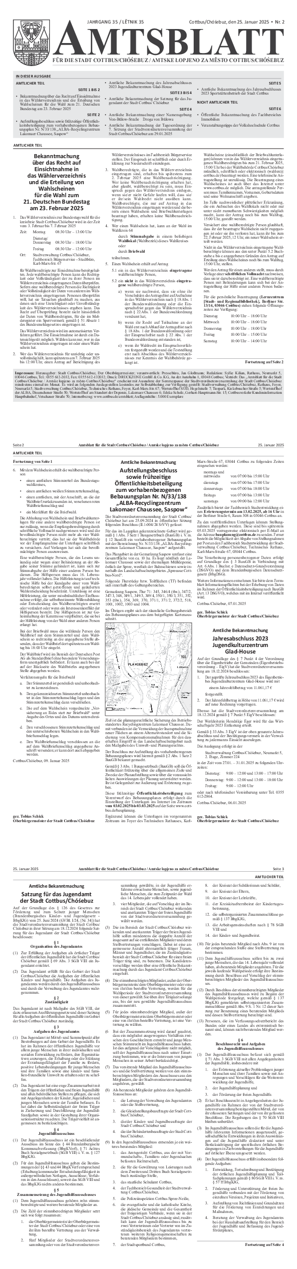 - Amtliche Bekanntmachung der Tagesordnung der 7. Sitzung der Stadtverordnetenversammlung der Stadt Cottbus/Chóśebuz am 29.01.2025