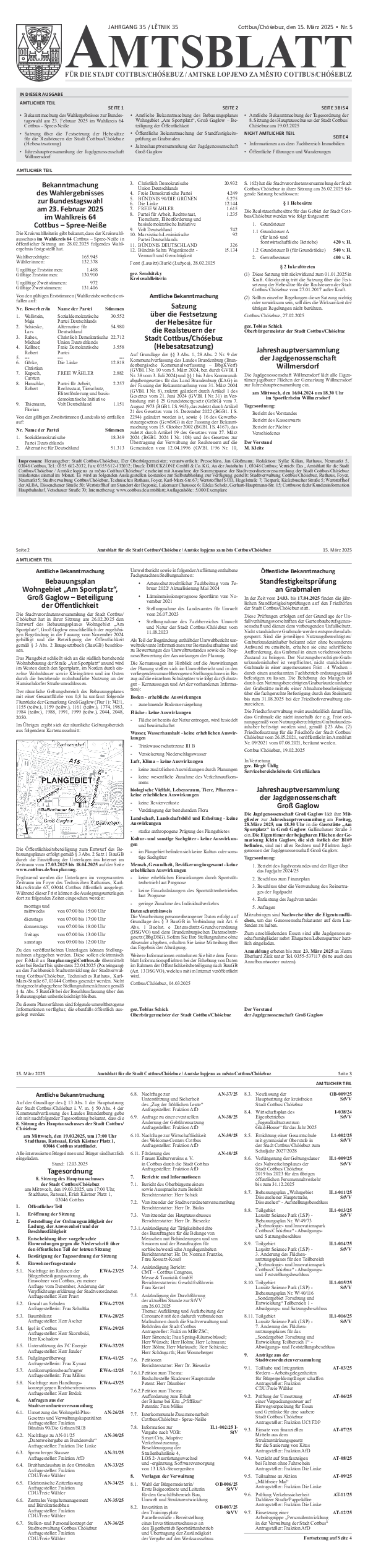 - Bekanntmachung des Wahlergebnisses zur Bundestagswahl am 23. Februar 2025 im Wahlkreis 64 Cottbus – Spree-Neiße