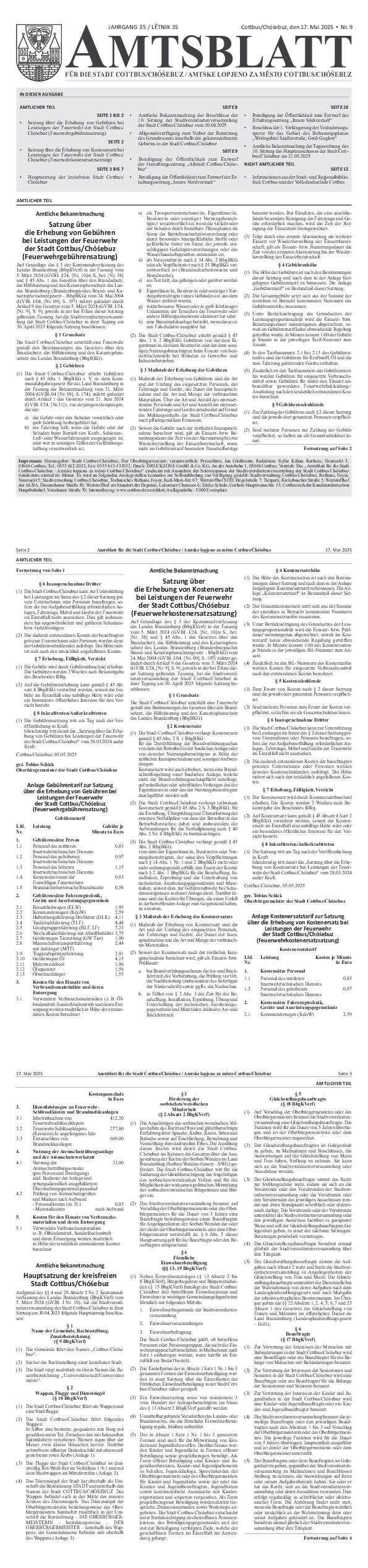 - Satzung über die Erhebung von Gebühren bei Leistungen der Feuerwehr der Stadt Cottbus/Chóśebuz (Feuerwehrgebührensatzung)