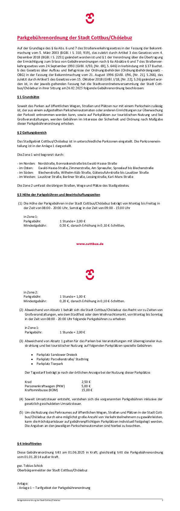Parkgebührenordnung 2025