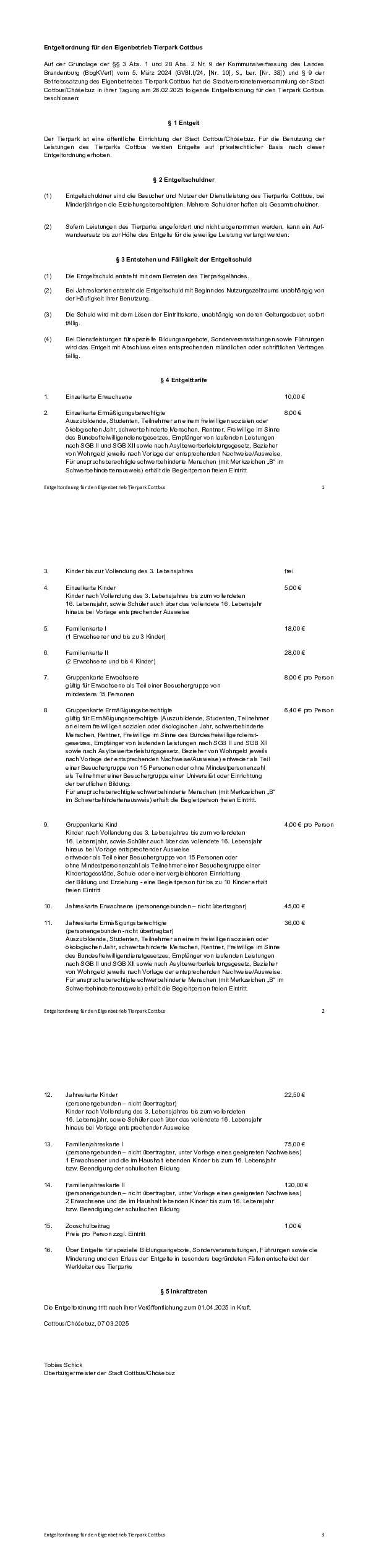 Entgeltordnung Tierpark 2025