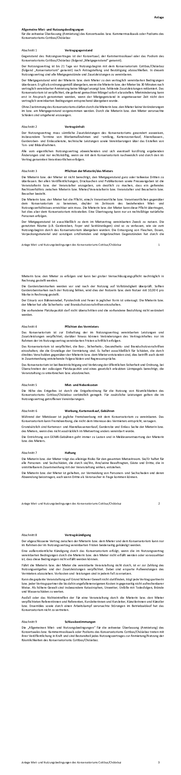 Anlage: Allgemeine Miet- und Nutzungsbedingungen