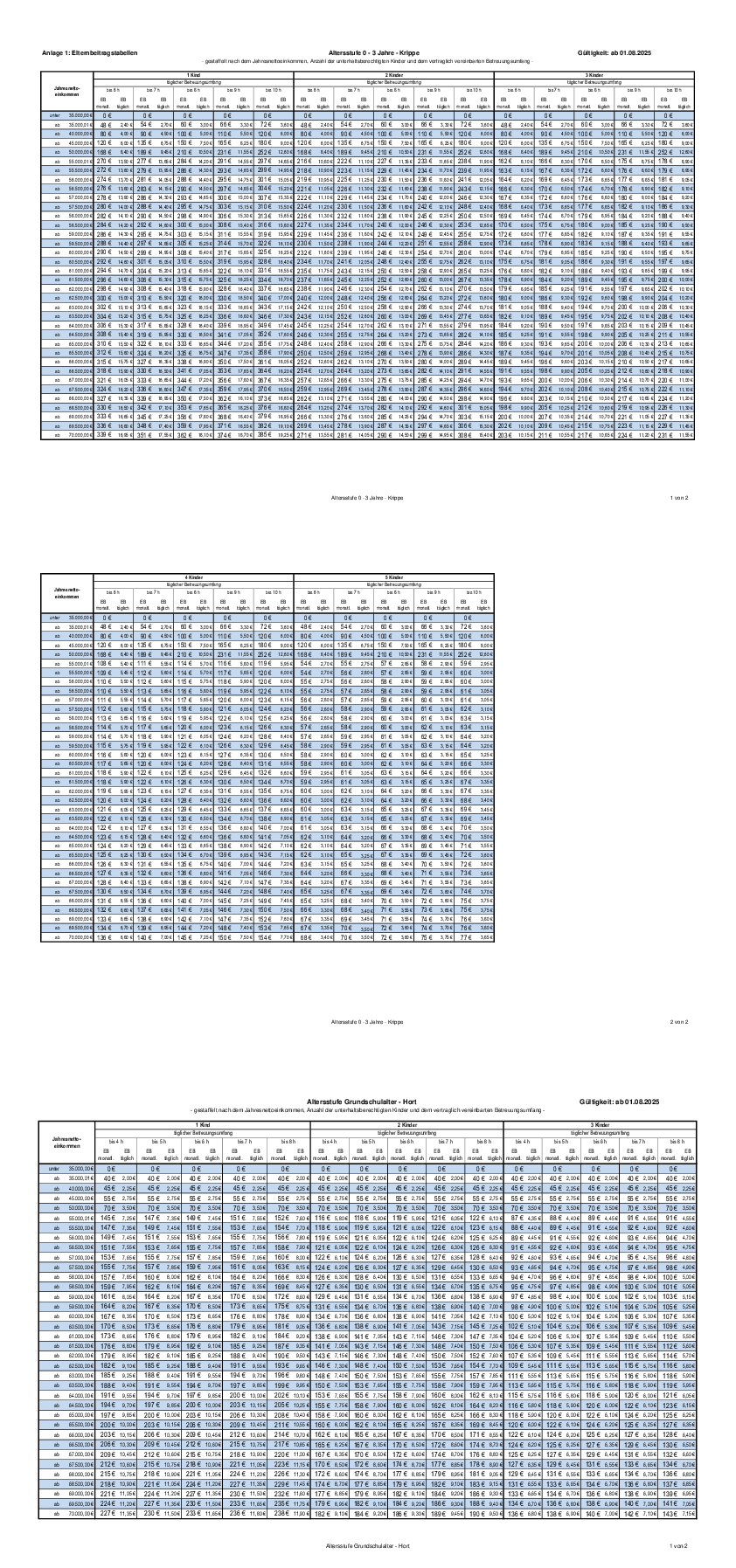 Anlage: Elternbeitragstabellen Krippe und Hort