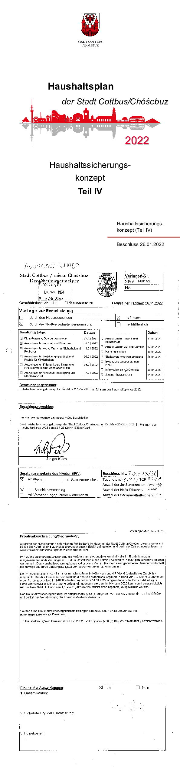 Haushaltssicherungskonzept der Stadt Cottbus/Chóśebuz 2022 - 2025