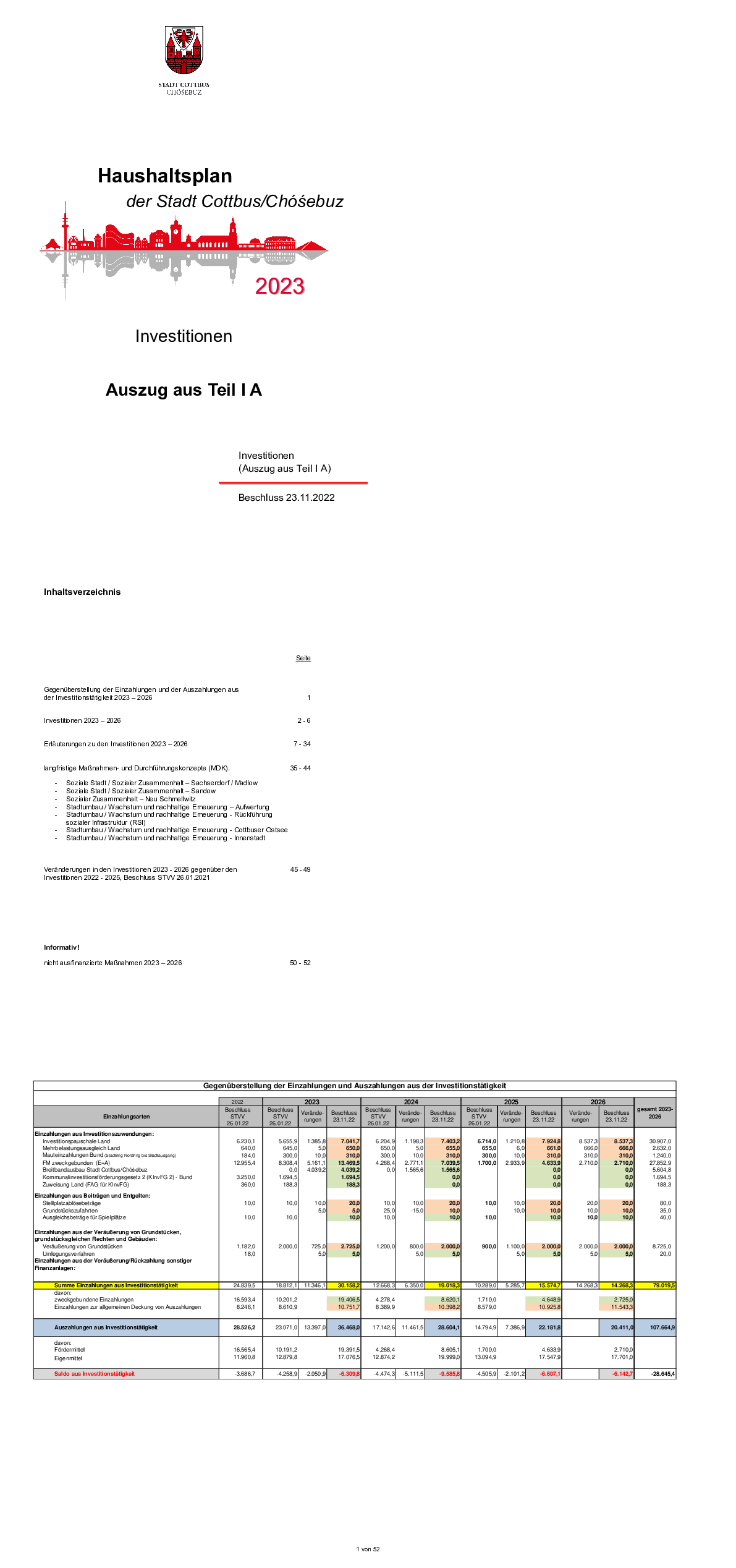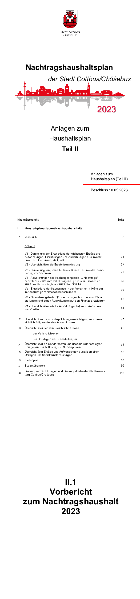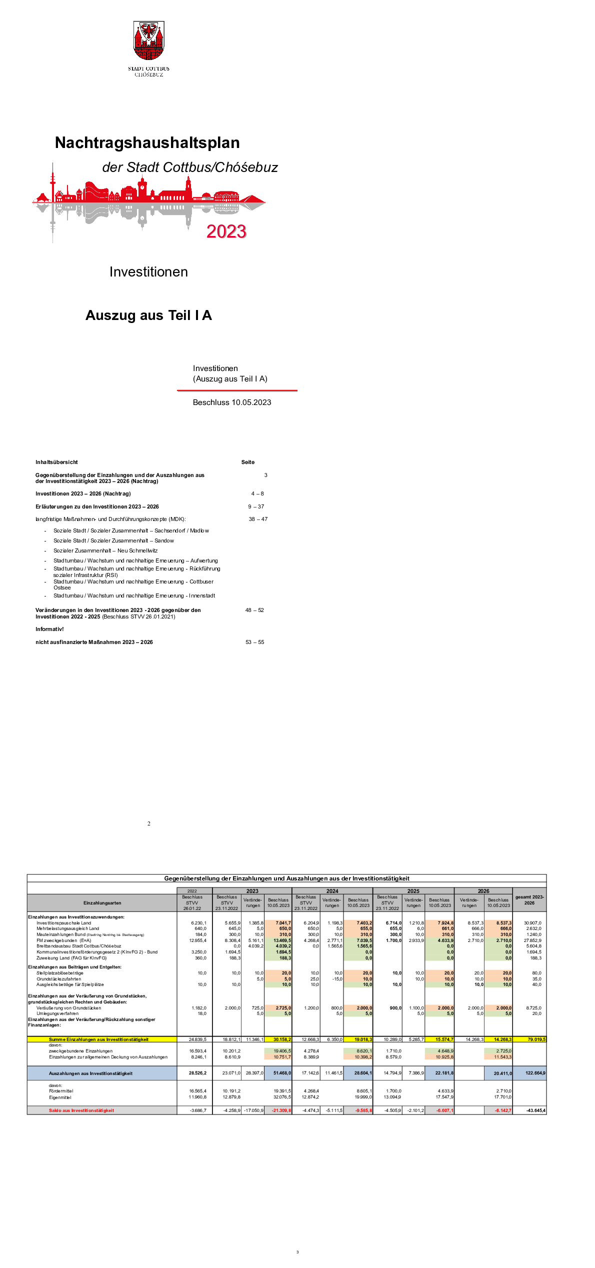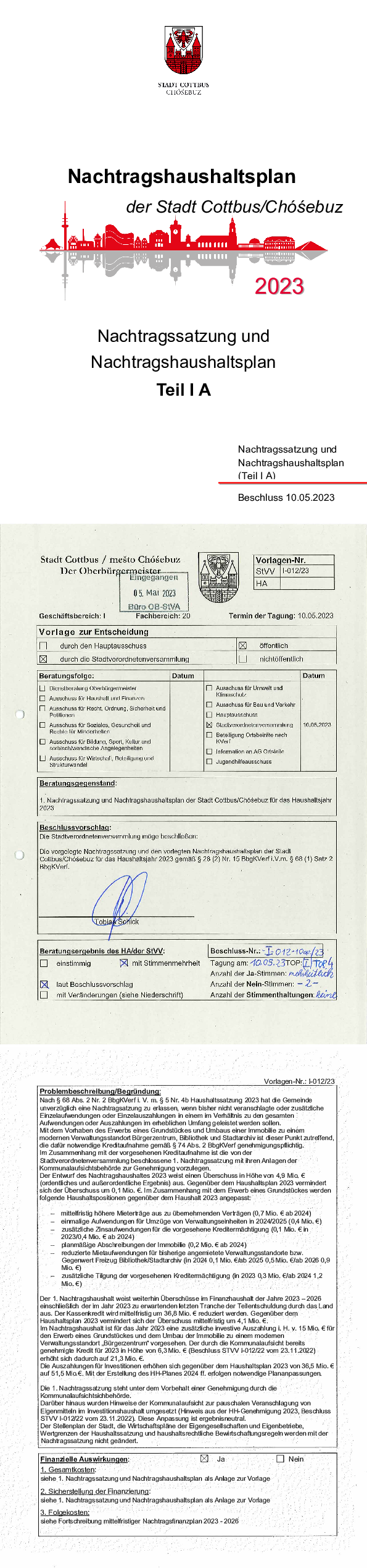 Nachtragshaushaltsplan der Stadt Cottbus Chóśebuz für das Jahr 2023, Teil IA