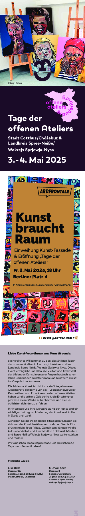 Anfang Mai öffnete Cottbus wieder die Türen zu seinen kreativen Räumen: Am Samstag, den 3. Mai von 14 bis 18 Uhr und am Sonntag, den 4. Mai von 11 bis 18 Uhr luden die Tage des offenen Ateliers zu einem besonderen Kunstwochenende ein.