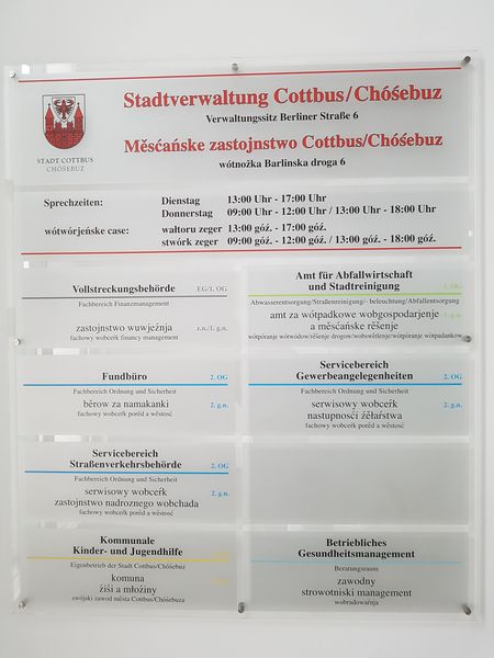 Der Servicebereich Abfallwirtschaft, Entsorgungsanlagen, Stadtreinigung, Beleuchtung der Stadt Cottbus/Chóśebuz berät und informiert bei Fragen: