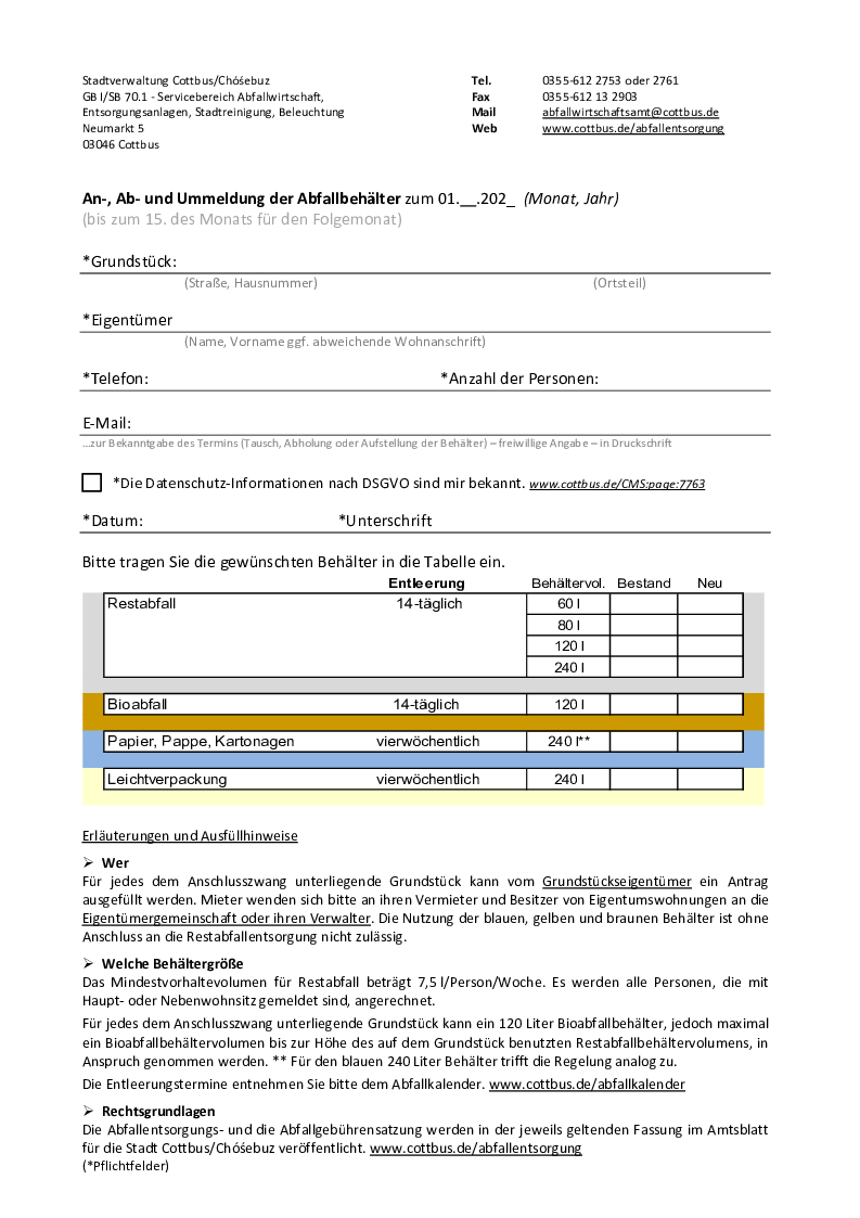 - mit dem Onlineformular: www.cottbus.de/biotonne