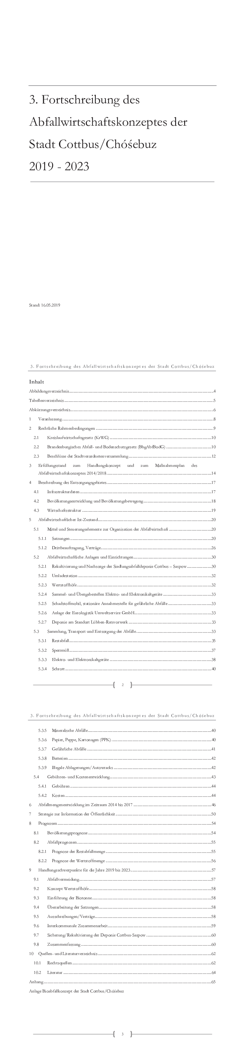 - Öffentlich-rechtliche Vereinbarung über die Entsorgung von Bioabfällen der Stadt Cottbus/Chóśebuz (siehe Amtsblatt Nr. 13/ 2019)