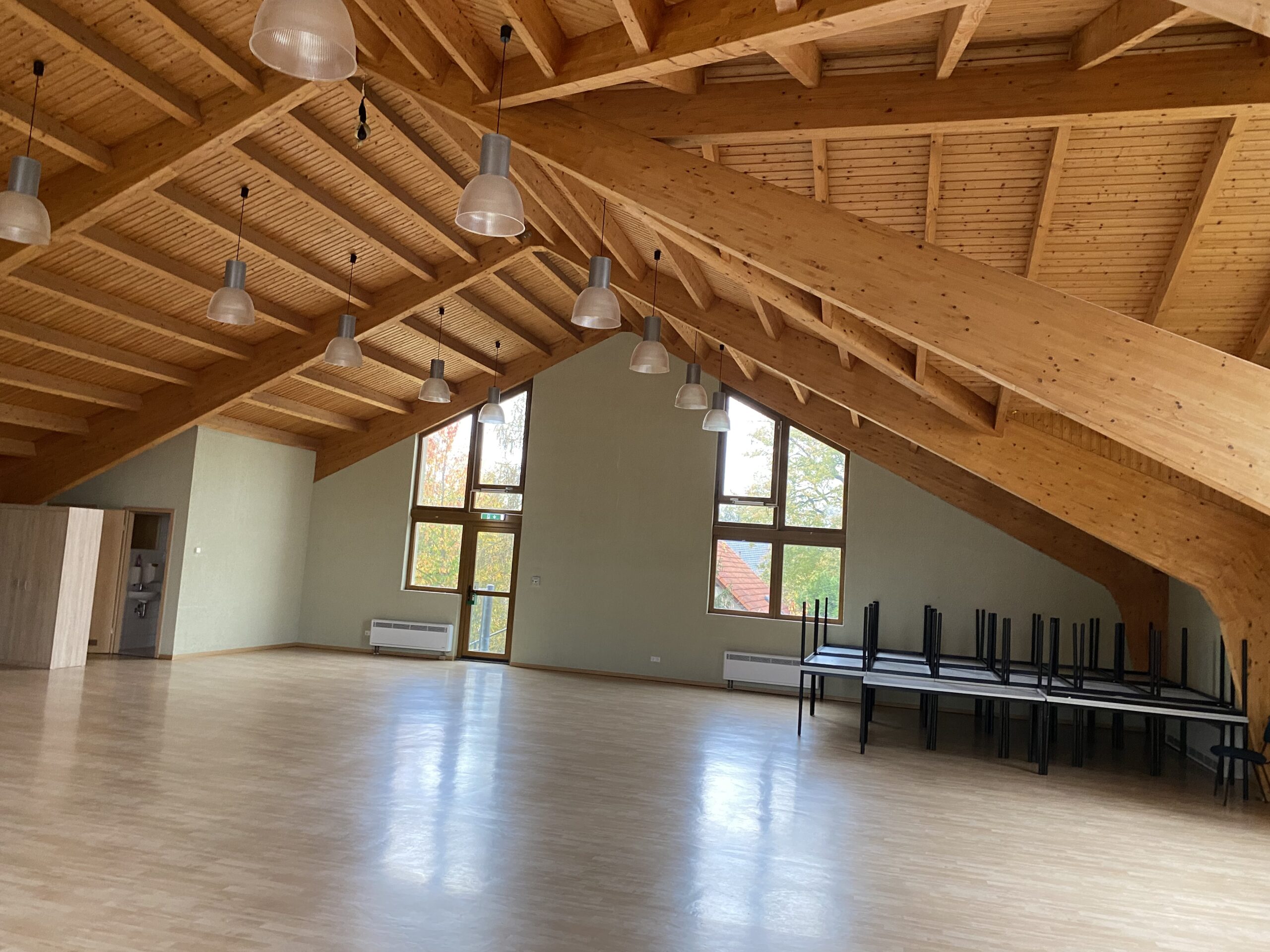 Im Obergeschoss der Spreeperle in Kiekebusch, gelegen in der Turnstraße 8, 03051 Cottbus, steht Ihnen ein großzügiger Saal mit einer Fläche von 225 m² zur Verfügung. Dieser bietet vielseitige Nutzungsmöglichkeiten für Ihre Veranstaltung.