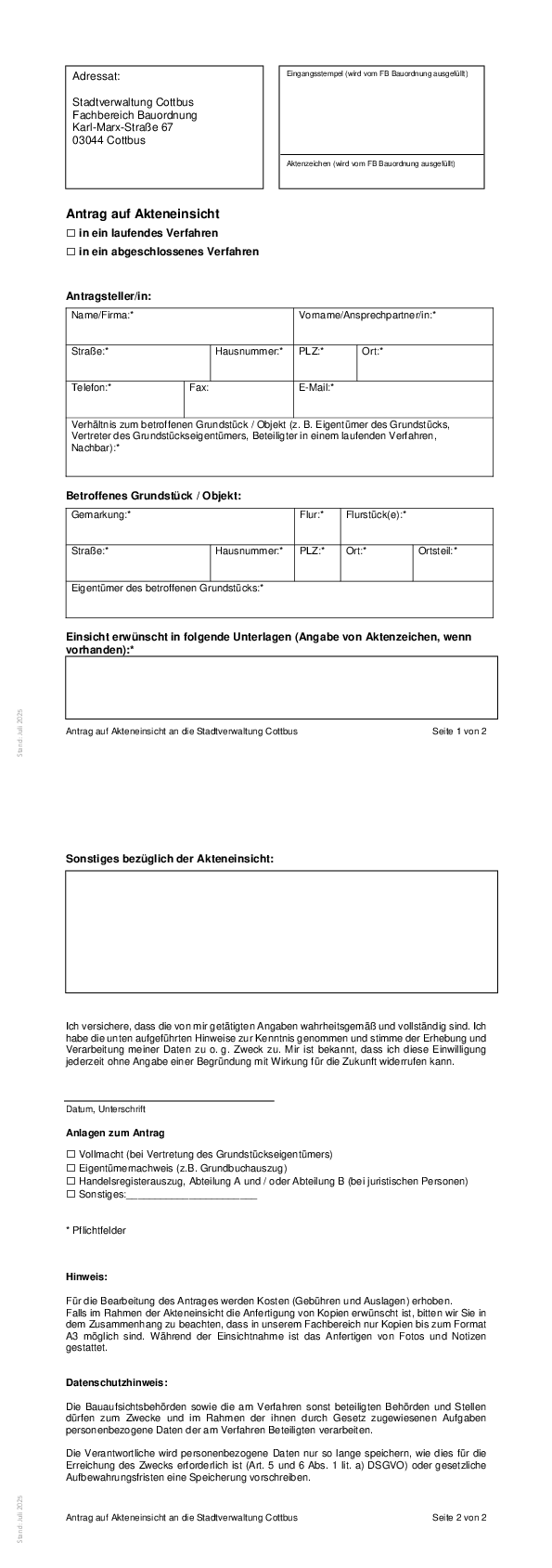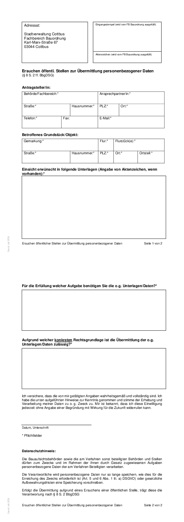 Antrag Übermittlung Personenbezogener Daten für öffentliche Stellen [Stand Juli 2025]