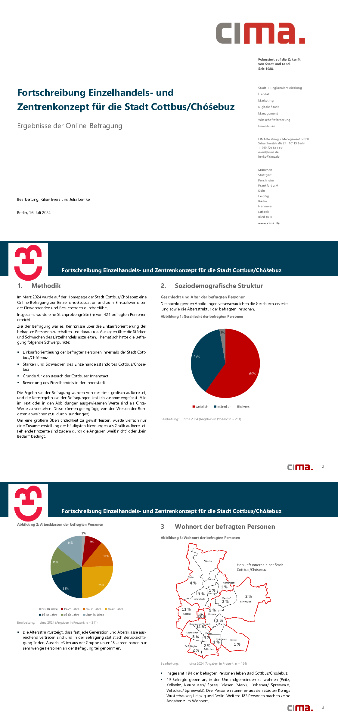 Herzlichen Dank allen Teilnehmenden an unserer Umfrage! Ihre Antworten sind ein wertvoller Beitrag zur Einzelhandelsnutzung in Cottbus/Chóśebuz. Die Ergebnisse finden Sie hier zum Download: