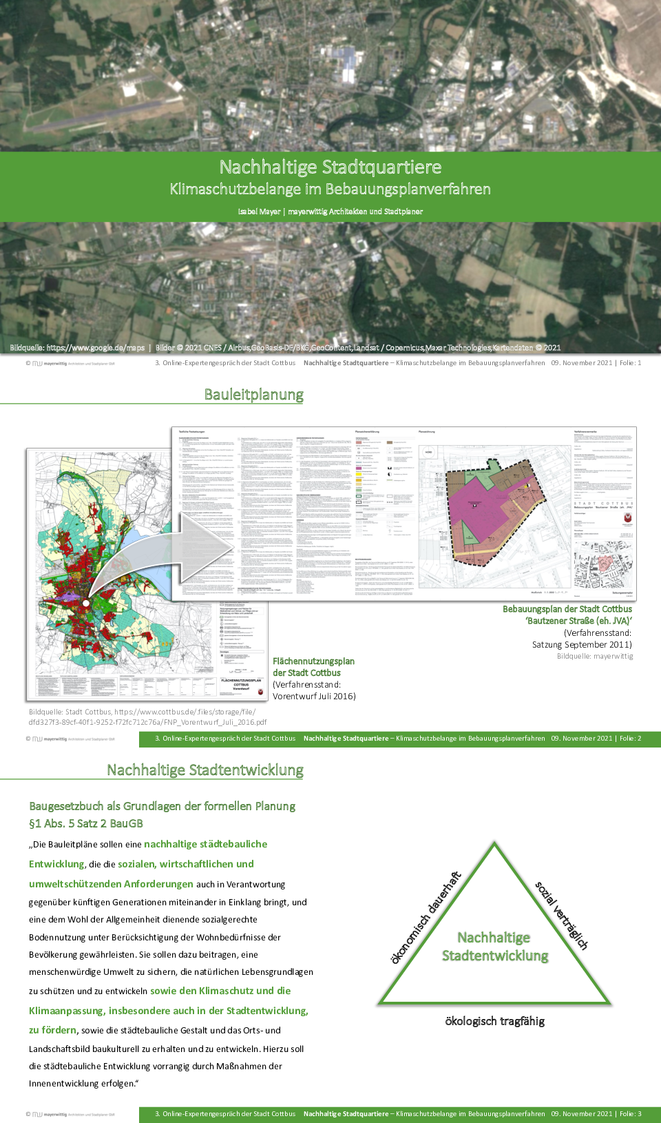 Am 09. November 2021 fand die Reihe der Expert*innengespräche die dritte Fortsetzung mit dem Schwerpunktthema „Umwelt, Erneuerbare Energien, Klimaschutz“ sein. Die besprochenen Themen reichten dabei von erneuerbare Energien und Mobilität, über die Anpassung an den Klimawandel aus Sicht der Landschaftsplanung bis hin zu nachhaltigen Stadtquartiere und die Instrumente einer klimagerechten Stadtplanung. Gleichzeitig stand das kommunale Klimaschutzmanagement, das energetisches Sanierungsmanagement sowie das Energiemonitoring kommunaler Gebäude im Rahmen von Smart City im Fokus der Veranstaltung.
