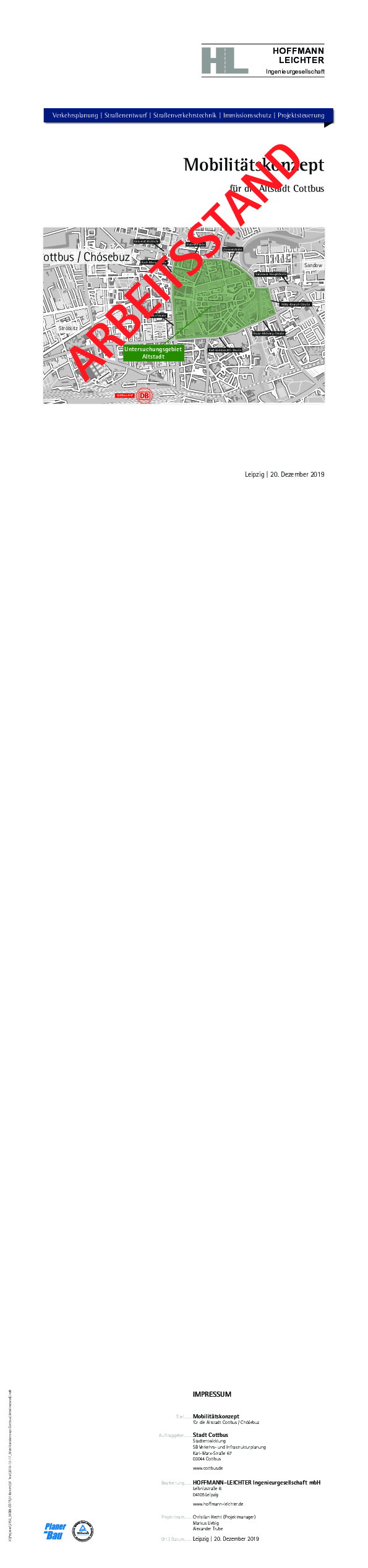 Das im November 2018 in Auftrag gegebene integrierte Verkehrskonzept beschäftigt sich mit nachhaltiger Mobilität für das Gebiet der Cottbuser Altstadt.