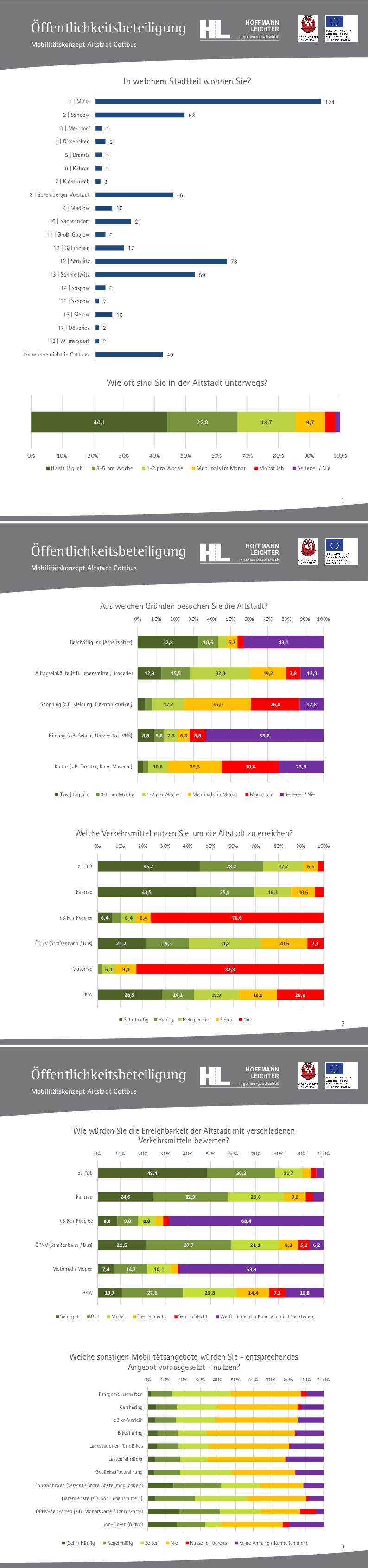 Dafür wurde im ersten Schritt eine Online-Befragung zum Mobilitätsverhalten, verkehrlichen Defiziten und Verbesserungswünschen bis zum 20. März 2019 durchgeführt.