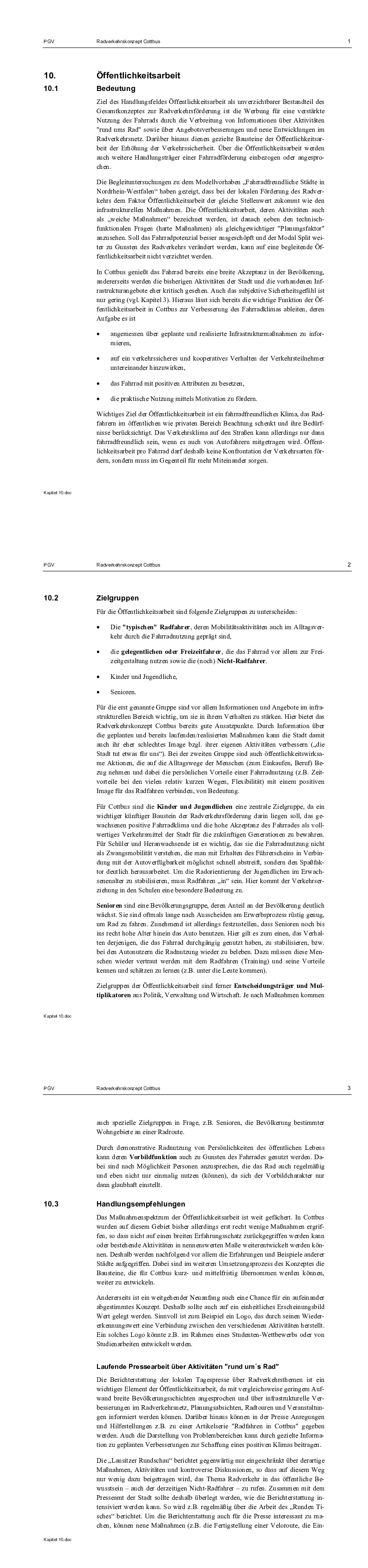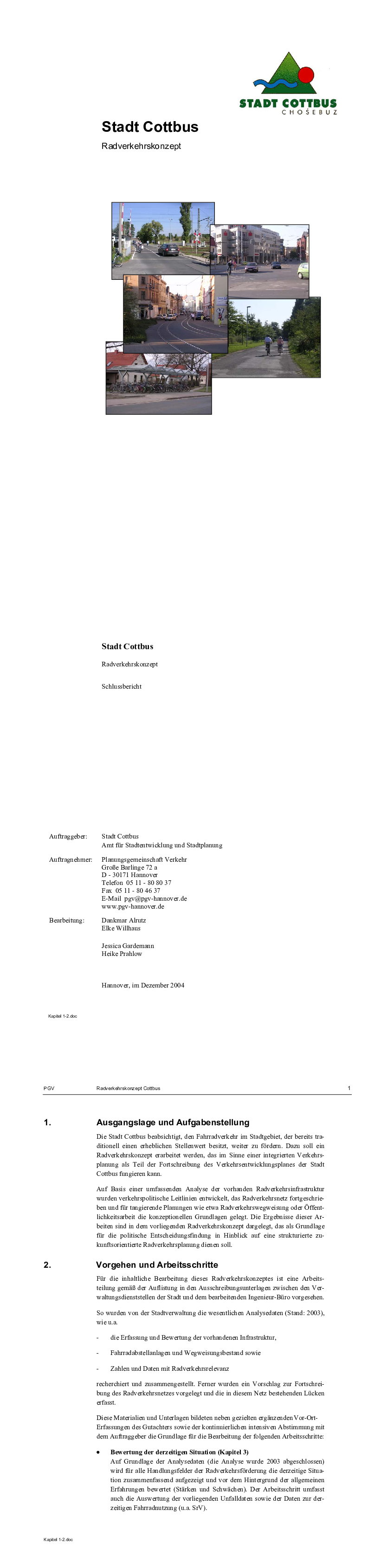 Die Stadt Cottbus will aufbauend auf ihren bisherigen Aktivitäten die Förderung des Radverkehrs gezielt weiter vorantreiben. Dazu dient das vorliegende Radverkehrskonzept, das im Sinne einer integrierten Gesamtverkehrsplanung Teil der Fortschreibung des Verkehrsentwicklungsplanes der Stadt Cottbus ist.