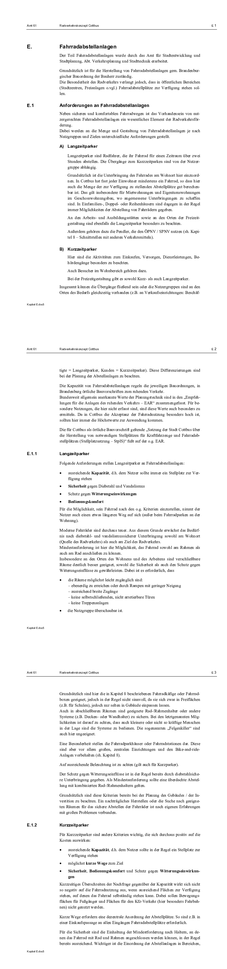 - Mehr Abstellanlagen für Fahrräder in einheitlicher Qualität, insbesondere an den Verknüpfungspunkten zum ÖPNV und Nahverkehrszügen