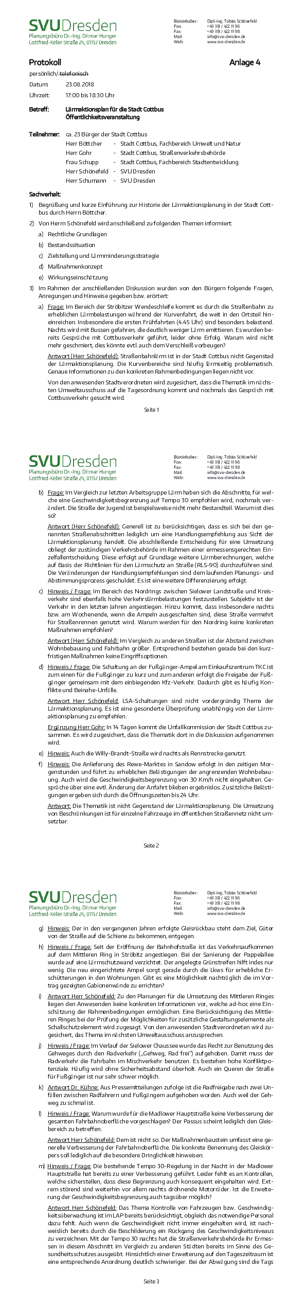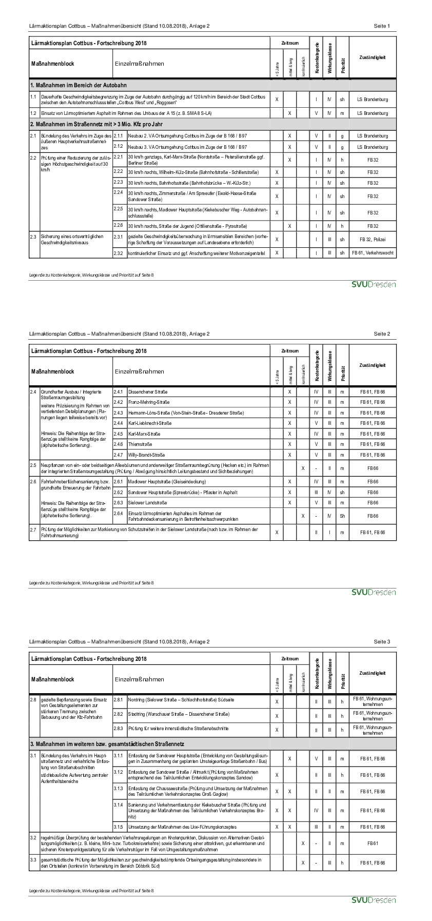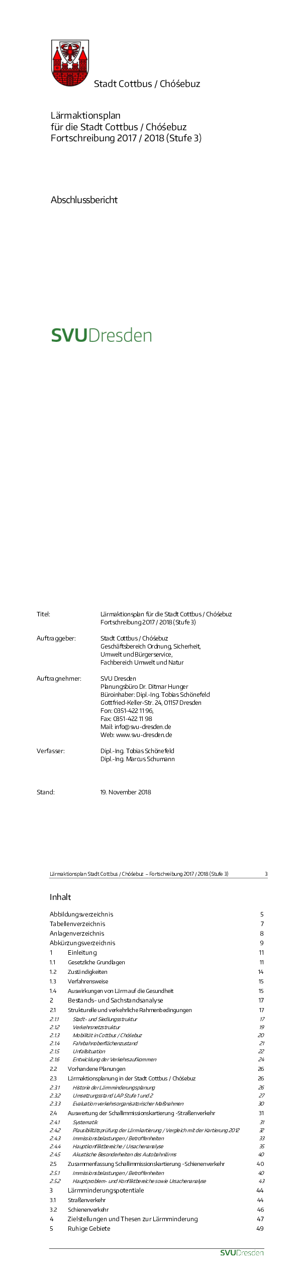 Lärmaktionsplan für die Stadt Cottbus/Chóśebuz - Fortschreibung 2017/2018 (Stufe 3)