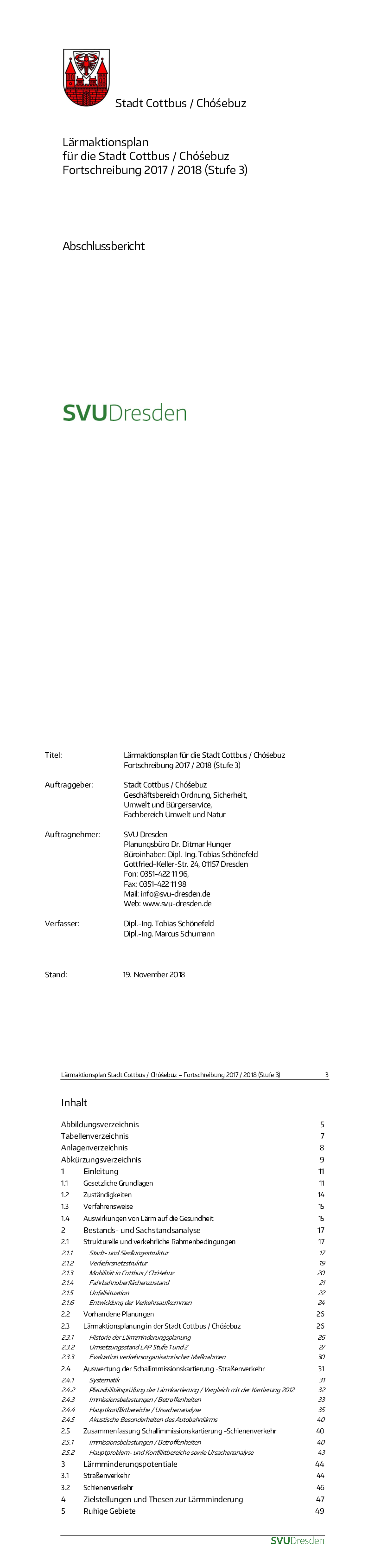 Lärmaktionsplan für die Stadt Cottbus/Chóśebuz - Fortschreibung 2024/2025 (Stufe 4)