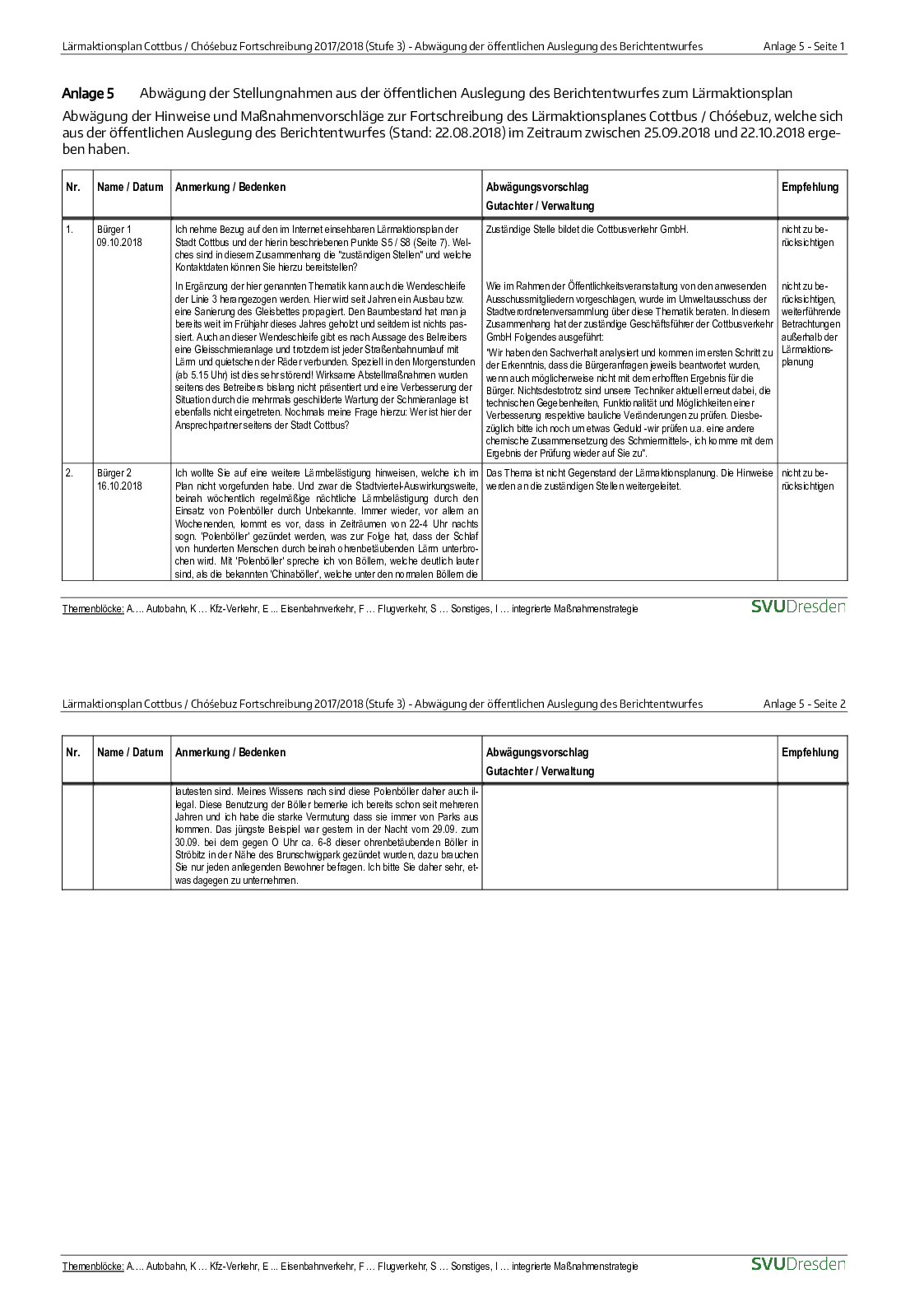 Lärmaktionsplan der Stadt Cottbus/Chóśebuz
