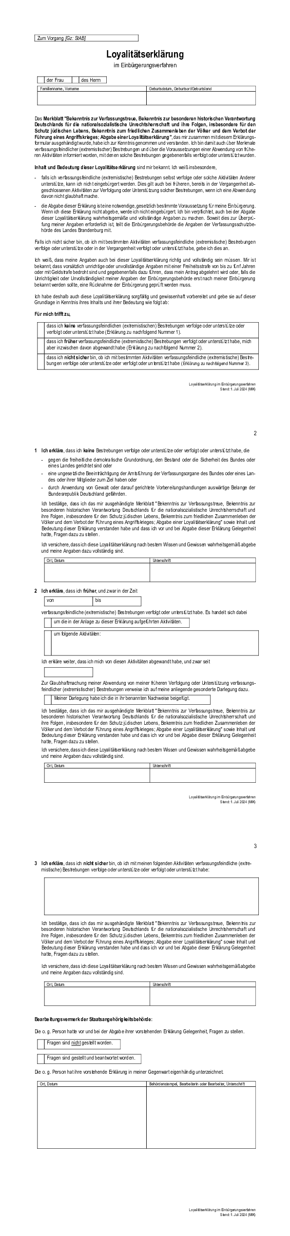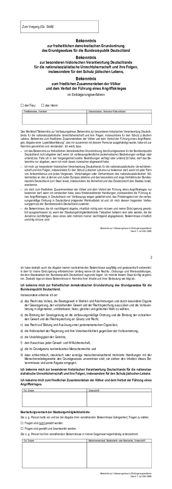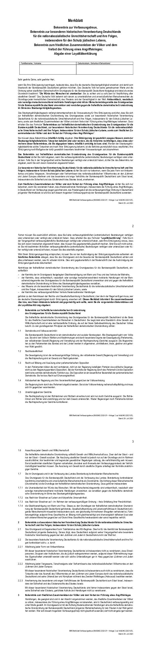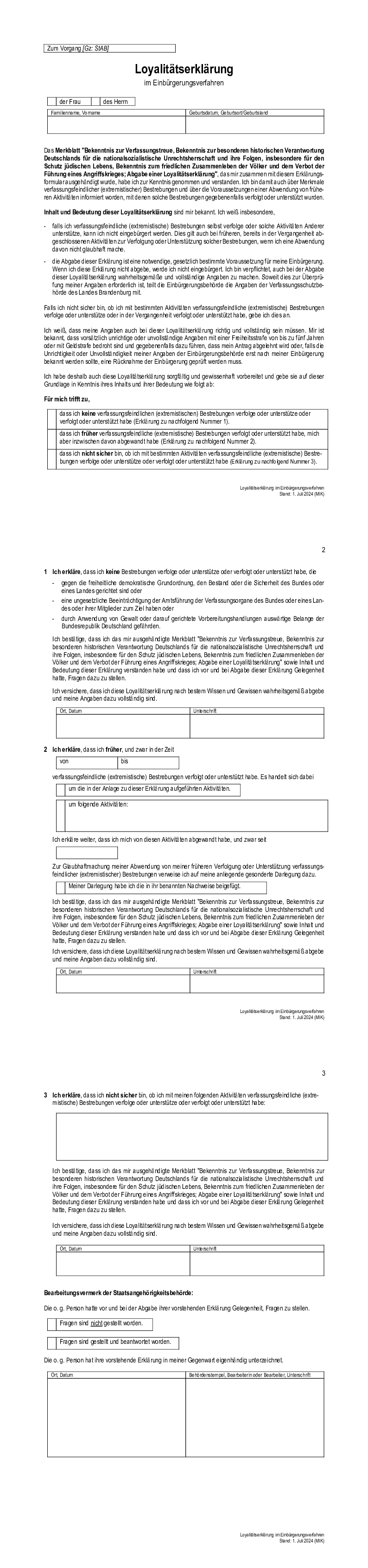 - Loyalitätserklärung im Einbürgerungsverfahren ‧ PDF ‧ 117.06 KByte ‧ 08.07.2024