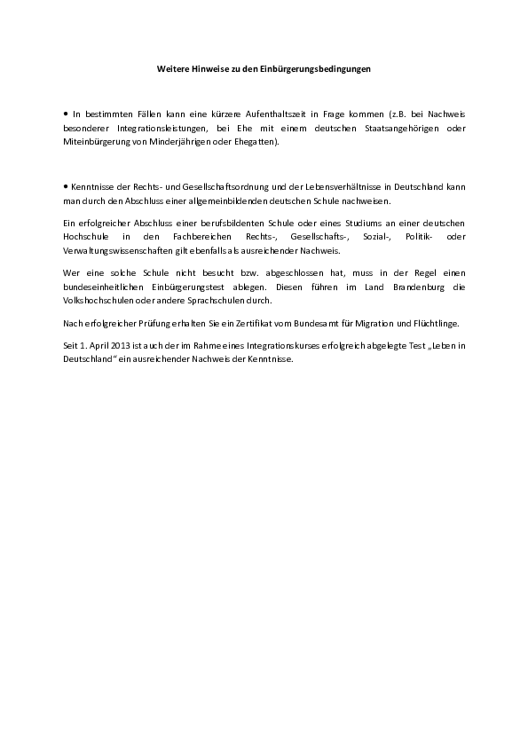 Weitere Hinweise zu den Einbürgerungsbedingungen