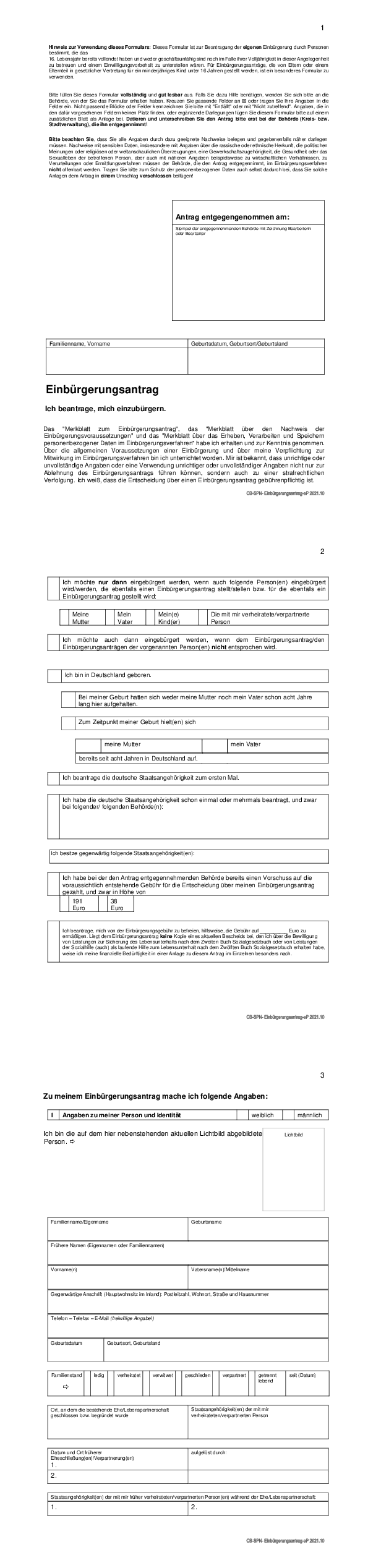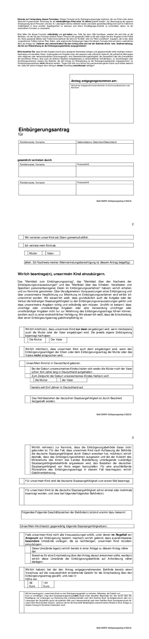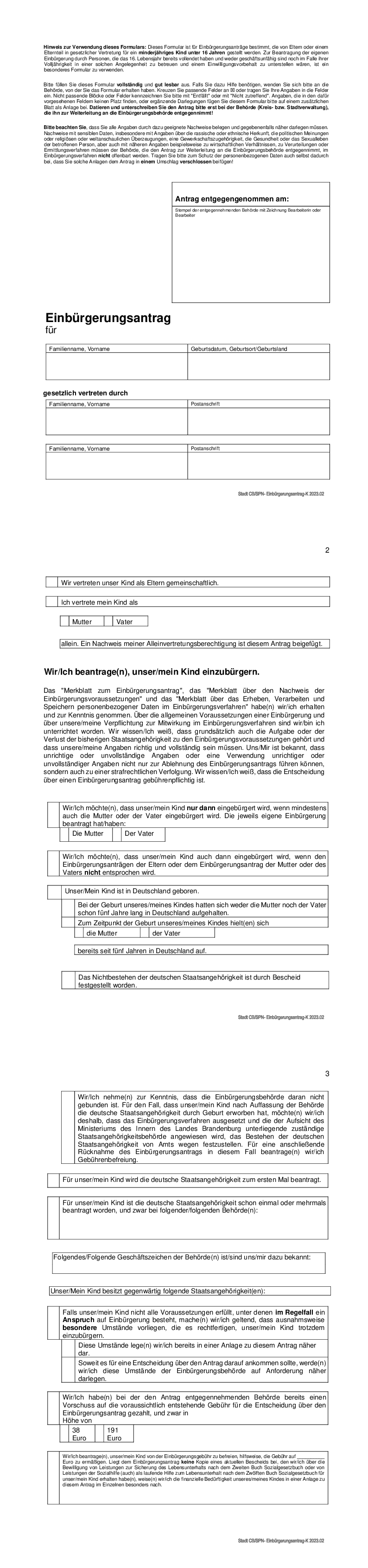 Antragsformular: Einbürgerungsantrag für ein Kind