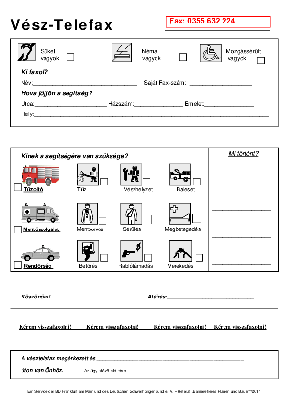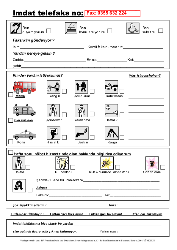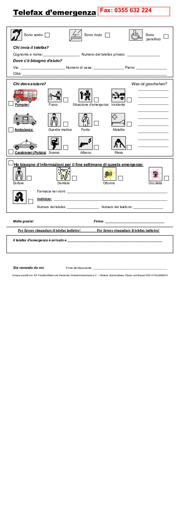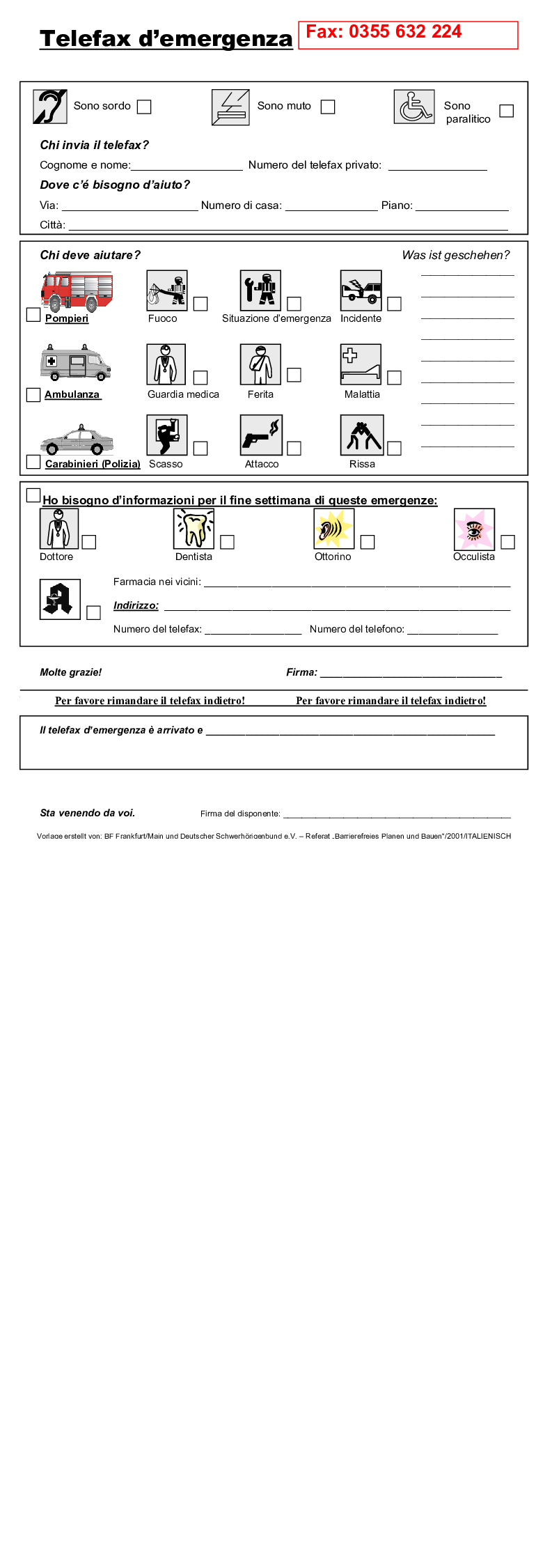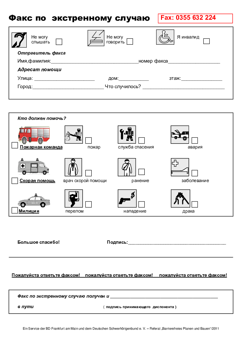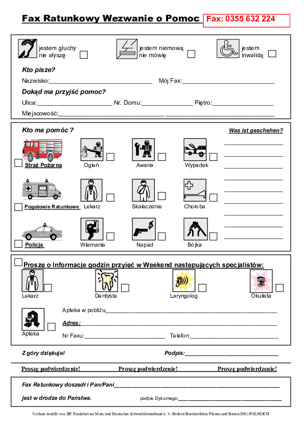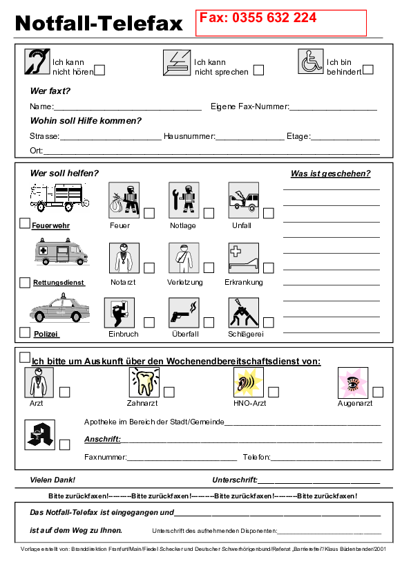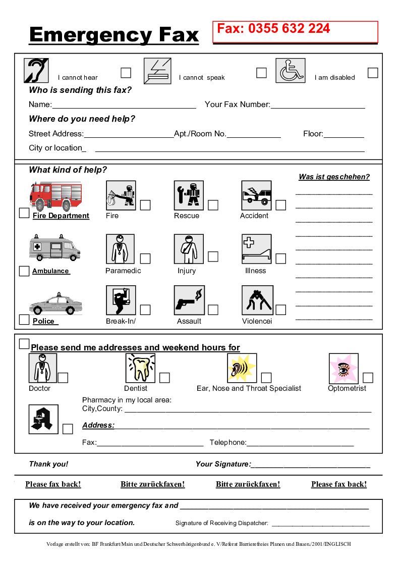 Notfall-Telefaxe in 10 verschiedenen Sprachen (Emergency Fax in 10 different languages)